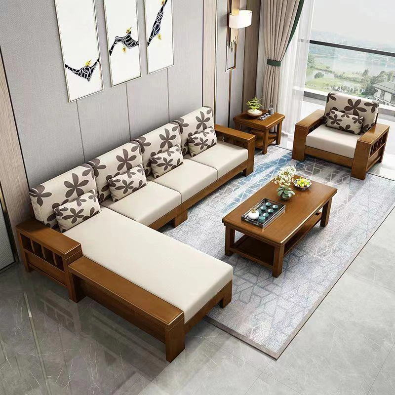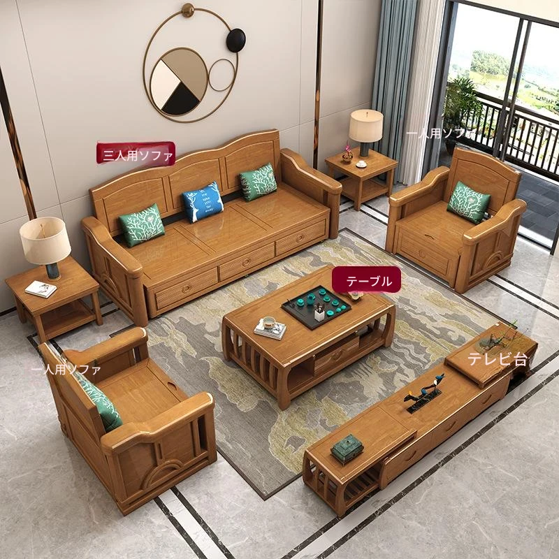 シンプルでモダンな実木製ソファ 家庭用コンビネーション 中華スタイル 小型リビングに最適なコーナーソファ 家具としての機能も兼ね備えたアイテム!快適な空間を演出します。