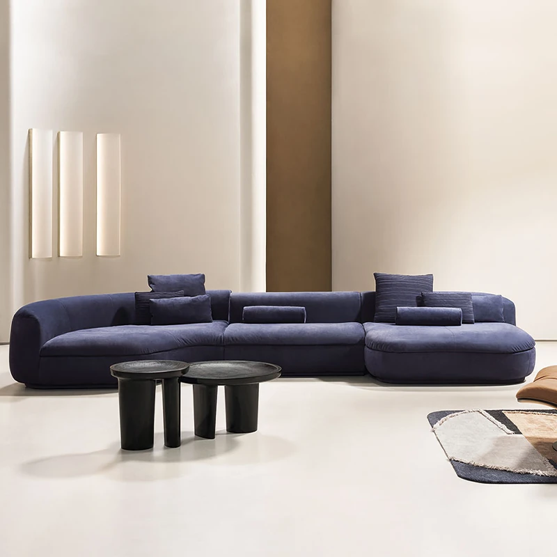 Baxterイタリアンラグジュアリー・ミニマルデザインのユニークな形状を持つマットなスエード仕上げのアーチ型北欧スタイル・ファブリックソファ - みんなでくつろげるおしゃれな空間を演出!