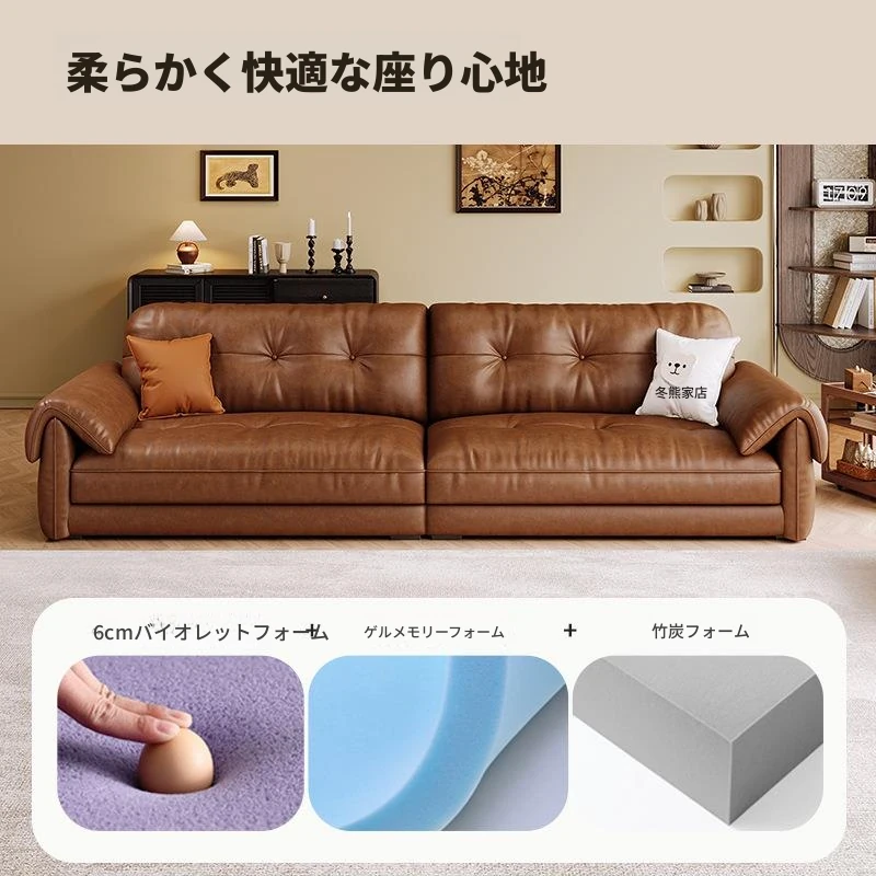 桐語特 フランス風ヴィンテージオイルレザー大耳象デザイン リビング用4人掛けブラウンレトロソファー - おしゃれで快適な居心地を実現!あなたのリビングに個性的な魅力をプラスします。