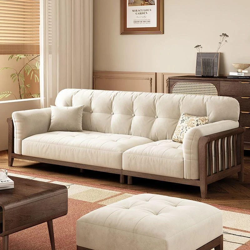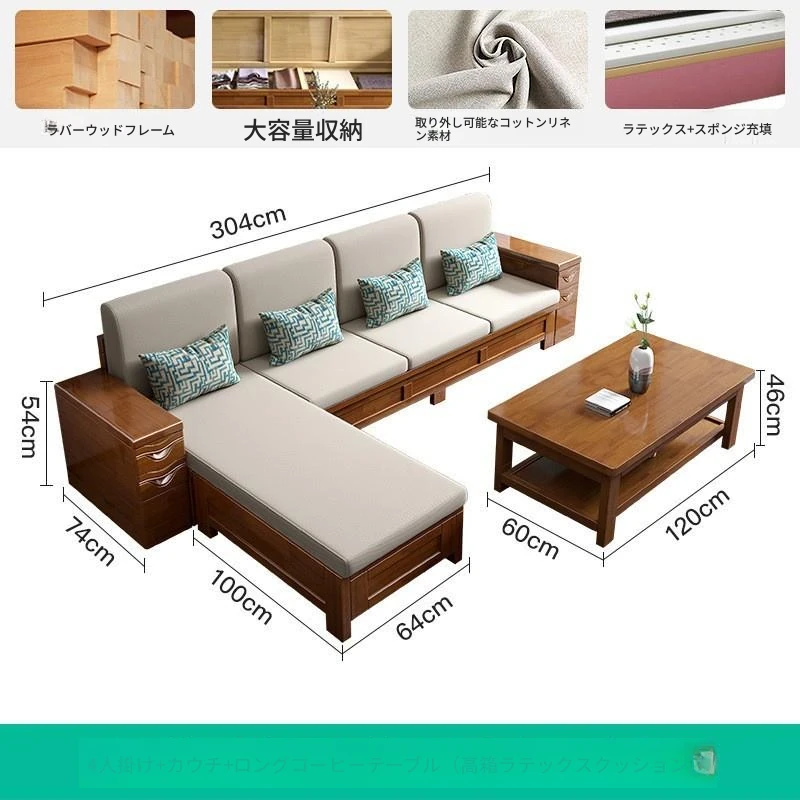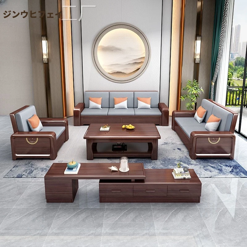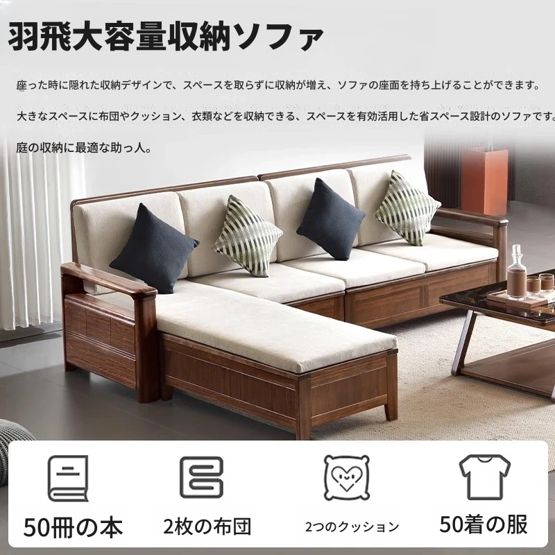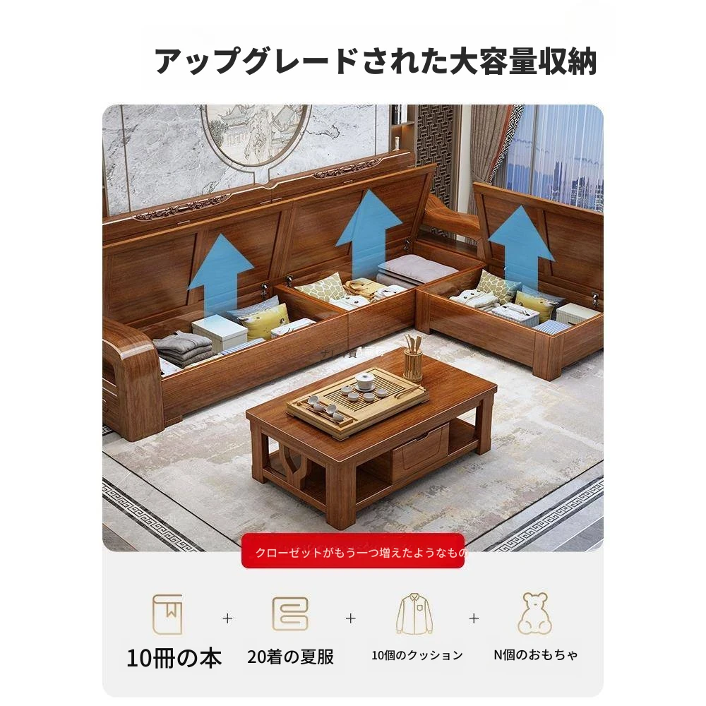 新中式全実木ソファー|リビングに最適!冬夏兼用、収納付きのウォールナット無垢家具|高品質な木材使用で、温もりある空間を演出!