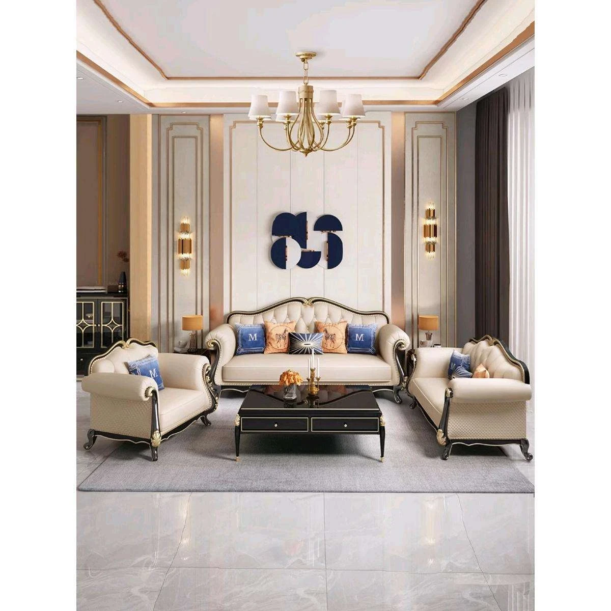 アメリカンスタイル本革ソファ・ラグジュアリー123組合せ!高級感溢れる無垢材使用、シンプルで洗練されたデザイン。別荘や高級リビングにぴったりの皮革家具で、上質なひとときをお楽しみください!