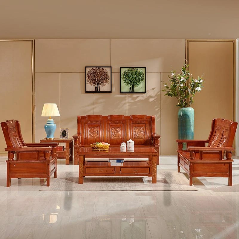 全木製 ソファ セット - 紅椿の木使用!小型住宅に最適な中華風古典デザイン、オフィスや農村風のインテリアにもぴったり。丈夫で経済的なタイプ、JG-吉祥で心地よい空間を演出!