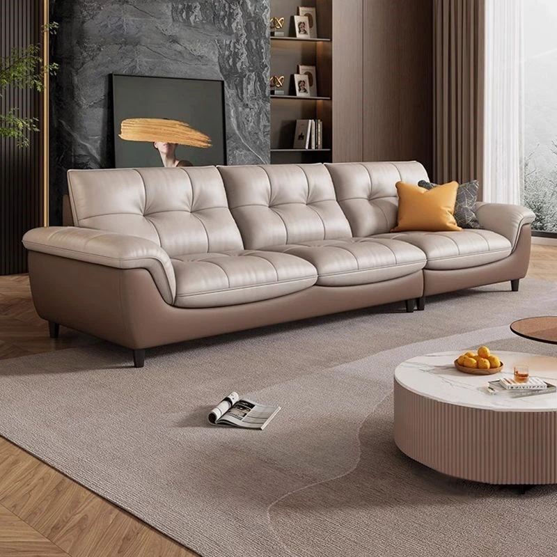 イタリアンミニマルデザインの新作!高品質トップレザー使用、カラーブロック真皮ソファ。リビングにぴったりのW型雲ソファで、優雅さと快適さを同時に実現!