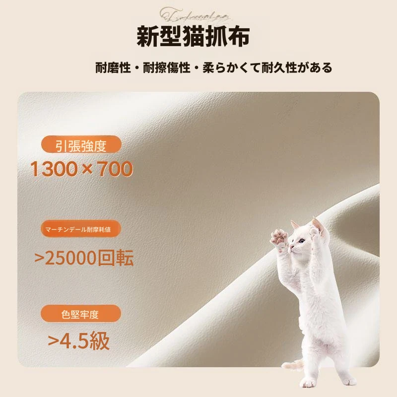 北欧風クリームカラーのテクニカルファブリックソファ - 小型住宅に最適!猫にも優しい爪とぎレザー仕様の2人掛け&3人掛け、春のような快適さを提供する人気のリビング用ソファ。