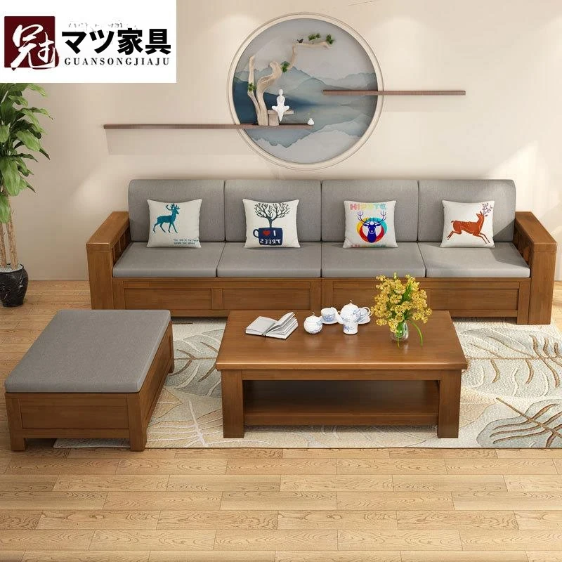 モダンミニマリストの無垢材ソファ 多人数用コンビネーション家具 リビング用中華スタイル収納付き貴妃ソファ 直販でお得!