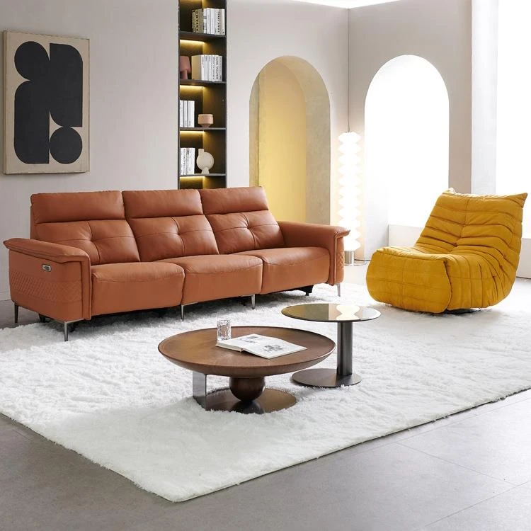 電動機能付き本革ソファ - リビングに最適なイタリアンミニマルデザイン!小型から中型のスペースにぴったり。3人掛け・4人掛け可能、調整可能でリクライニング機能付き。快適さとスタイルを両立した一品!