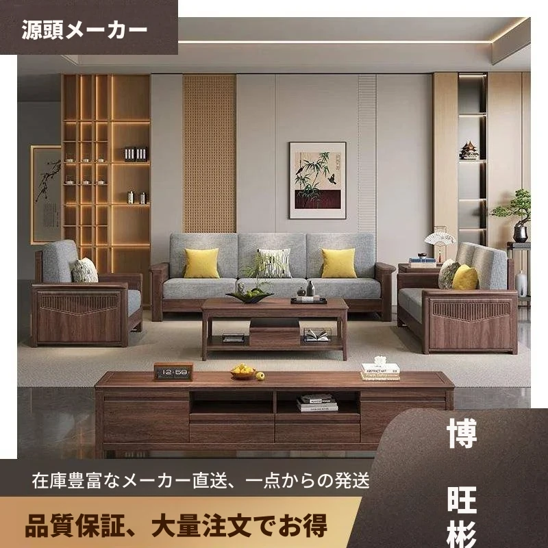 新中式スタイルの高級感溢れる無垢材ソファセット - 大小様々なリビングに最適、快適な禅の空間を演出するデザイン!