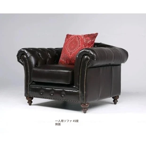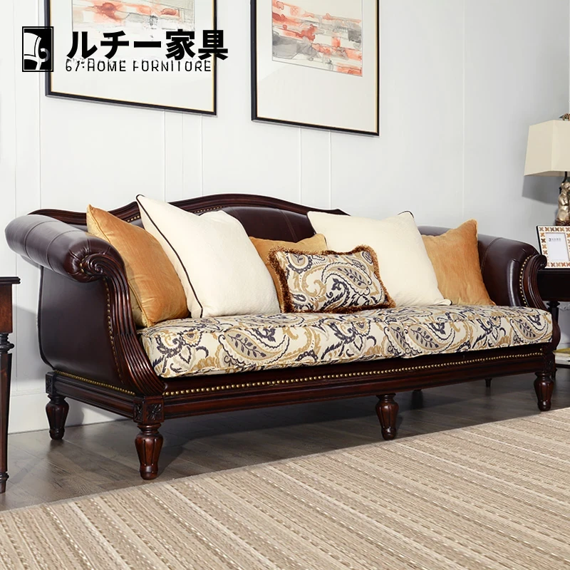 陸七ホーム 高級アメリカンビンテージ家具 中古風の本革&木製 高級別荘リビング用ソファ - 優雅な空間を演出する一品!