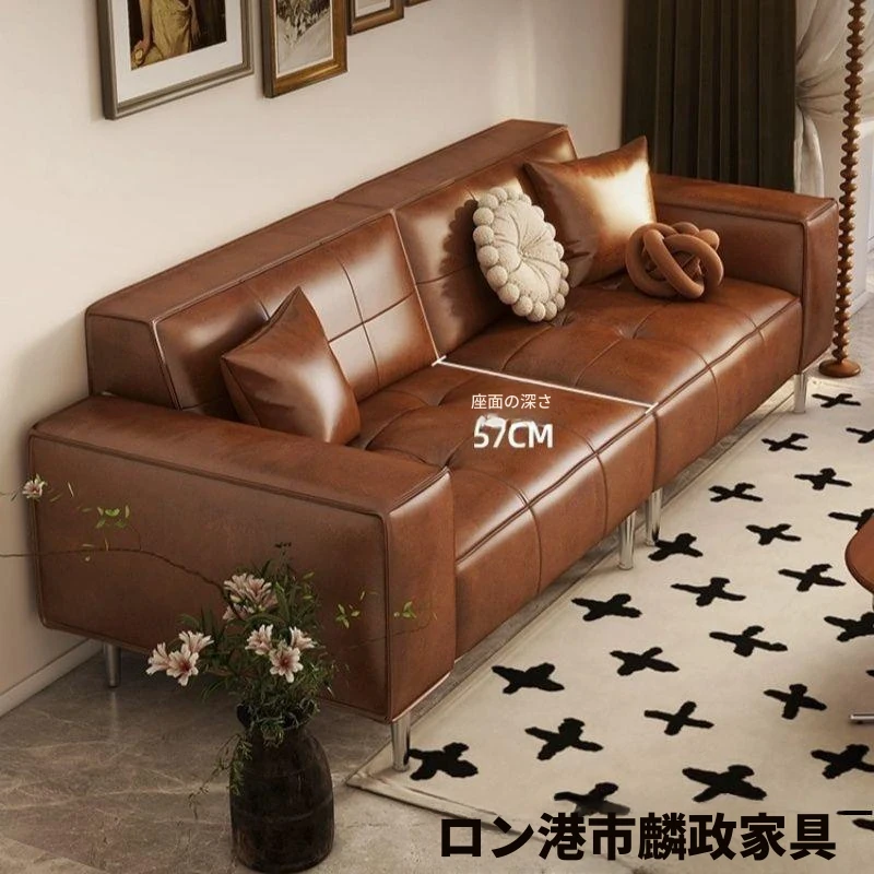 ダパ象排真皮ソファー モダンなリビングにぴったり!直線的な三人掛け、侘び寂びの美学を感じる95風デザイン。高品質なトップグレード牛革を使用した贅沢な座り心地をお楽しみください。
