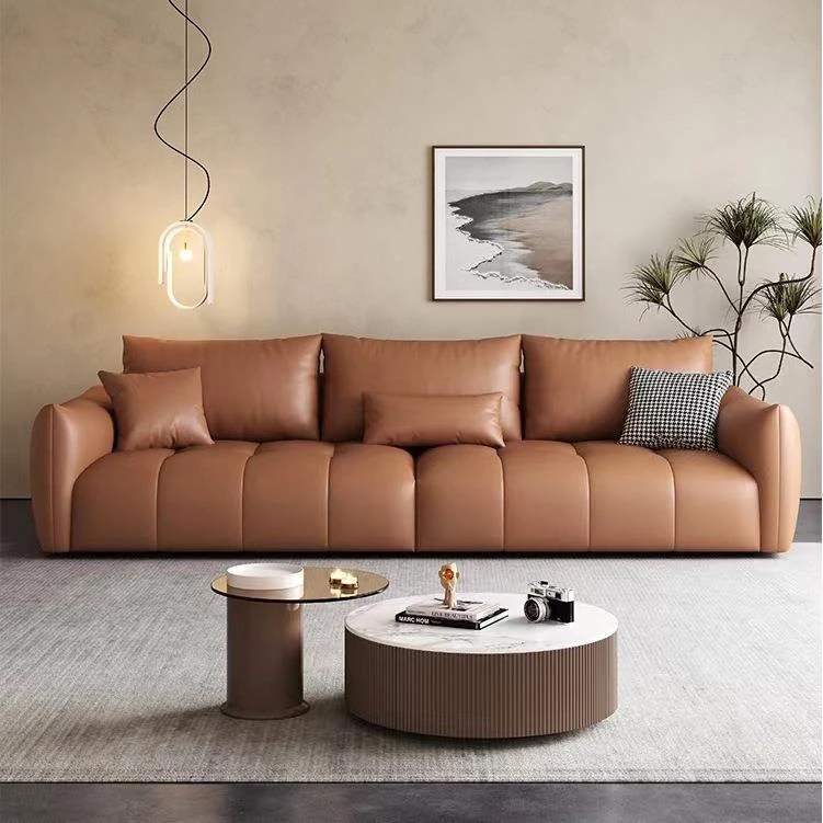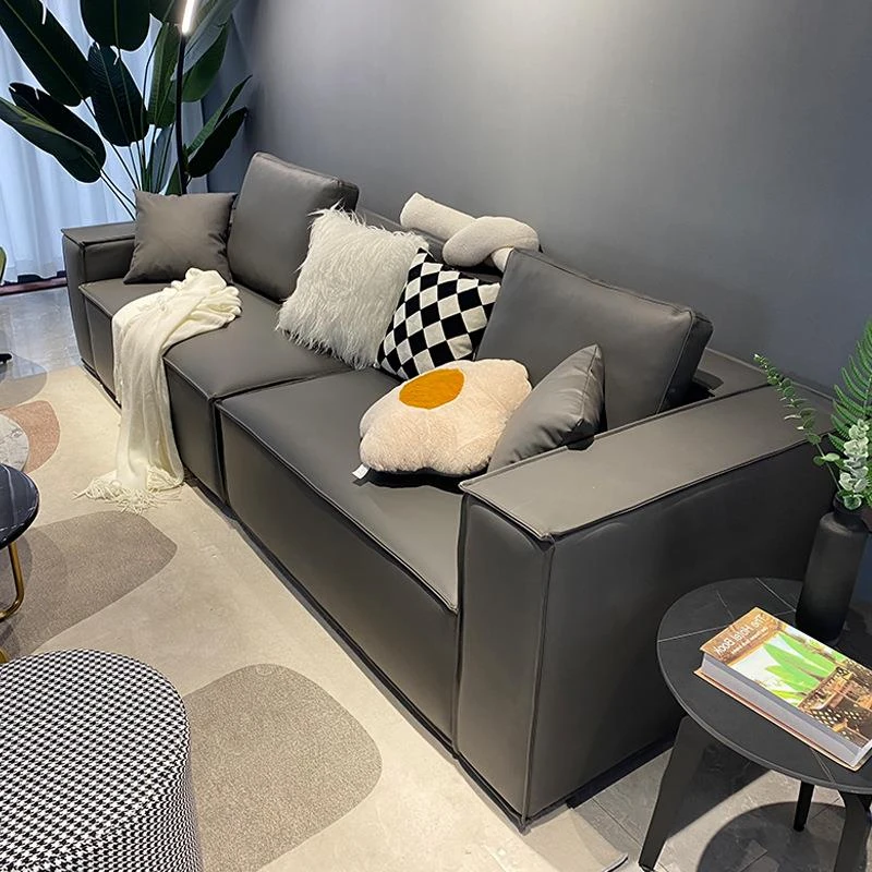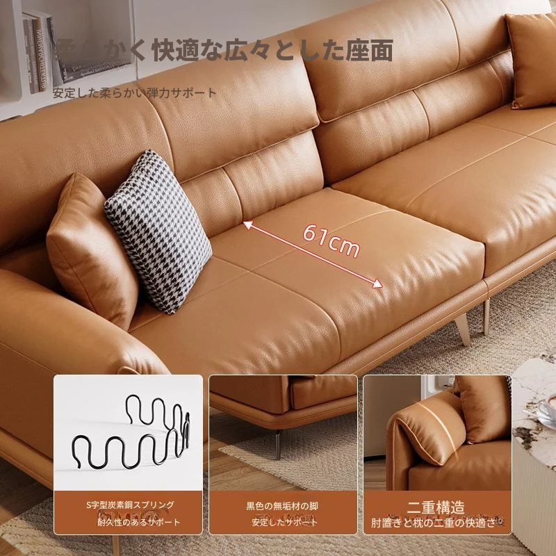 エコレザー製・豆腐型リビングソファ!3人掛け&4人掛け対応、イタリアンミニマルデザインのストレートソファで、スタイリッシュな空間を演出。快適さと洗練された美しさを両立させた一品!