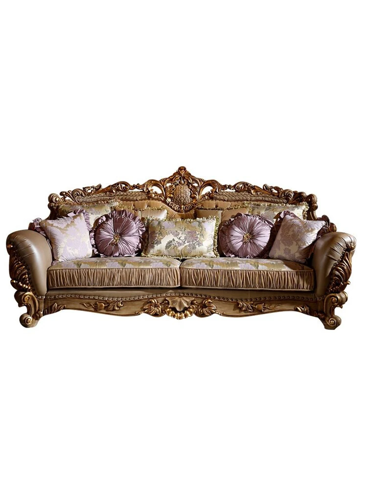 高級感溢れる欧風デザイン!高品質の木製ソファとファブリック、贅沢な大理石のコーヒーテーブルが組み合わさったフレンチスタイルのリビングルーム家具。優雅な宮廷の雰囲気をお楽しみください。