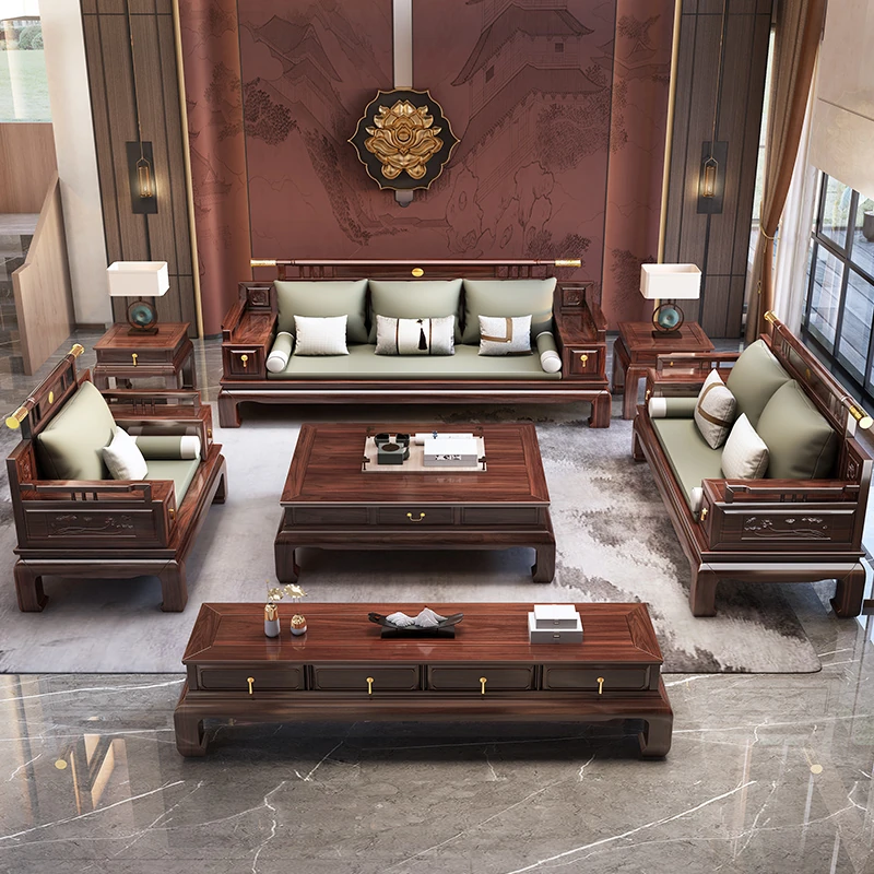 New Chinese Style Black Gold Wood Solid Sofa - Versatile for All Seasons, Ideal for Rural Villas, High-End Neo-Classical Zen Living Room Furniture