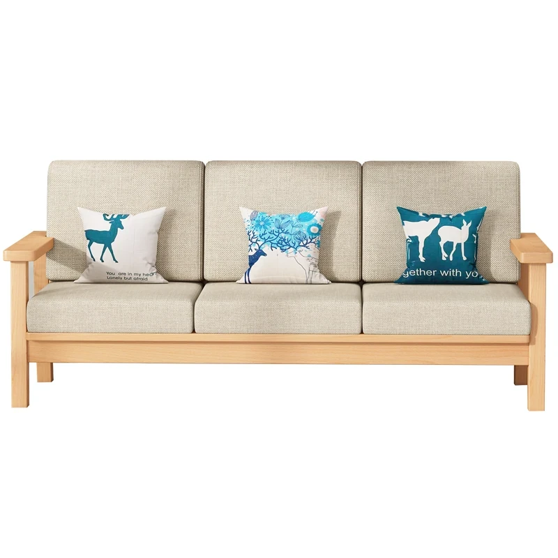 Modern Minimalist Beech Wood Sofa Set for Small Spaces - Removable and Washable Fabric, New Chinese Style, Comfortable Three-Seater Living Room Furniture