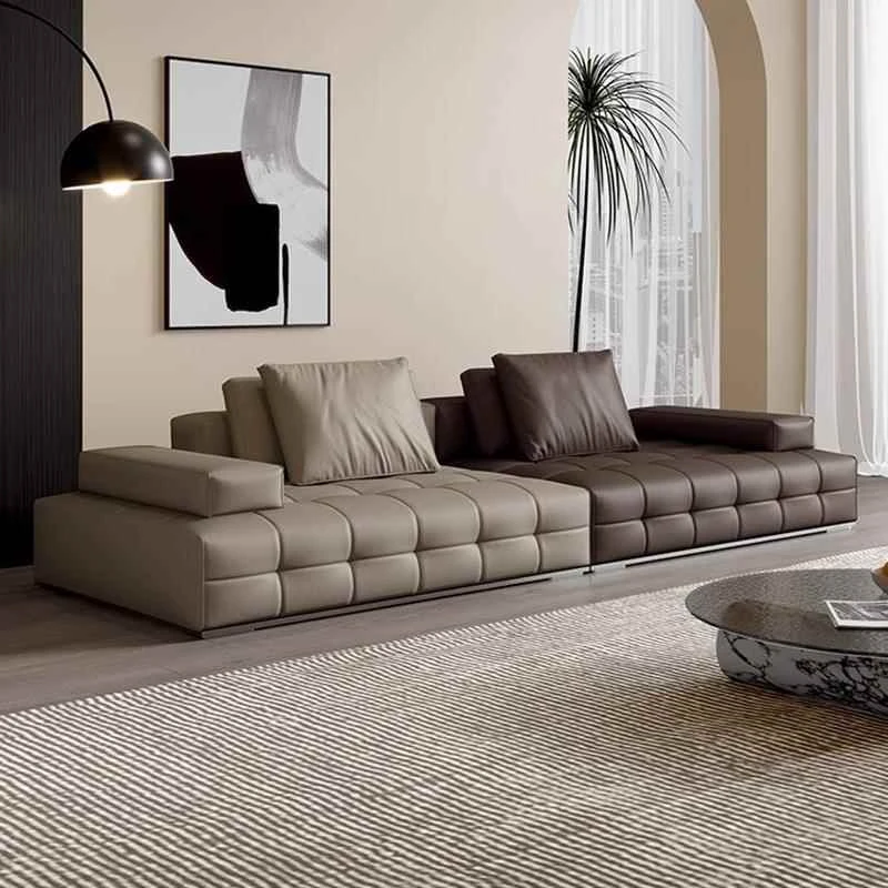Italian Minimalist Leather Sofa - Lawrence Collection for Spacious Living Rooms - Premium Faux Leather Furniture from Foshan, Perfect for Modern Home Decor