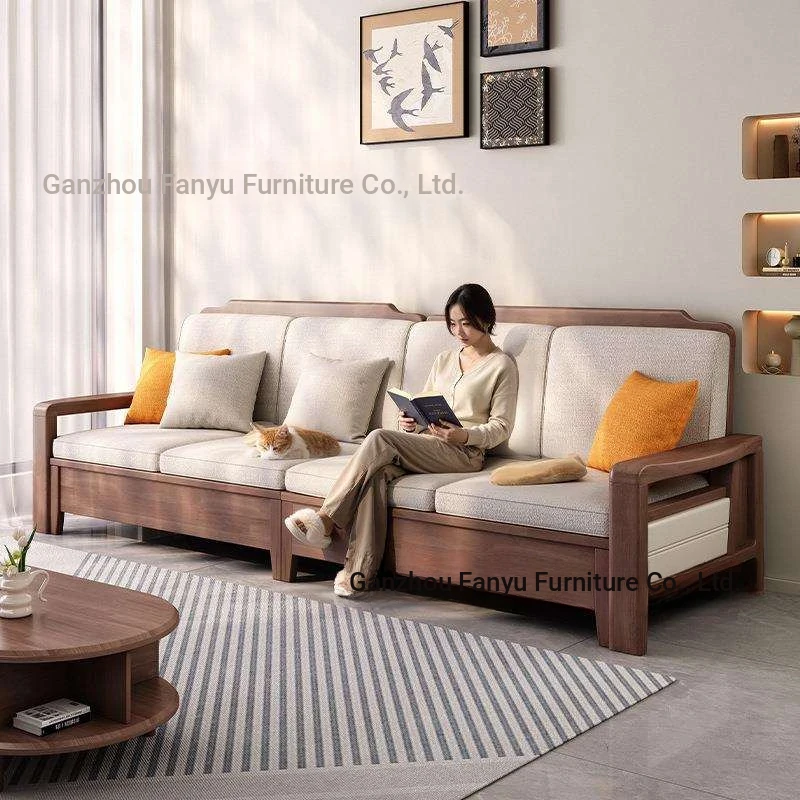 2024 New Arrival: 7T Solid Wood Sofa Set for Living Room - Modern Chinese Style, Perfect for Small Spaces, 3-Seater Family Sofa Combination