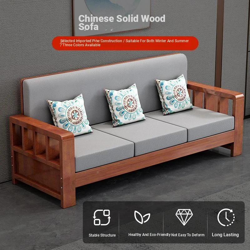 Solid Wood Sofa Set - Compact Design for Small Living Rooms, Featuring a Stylish New Chinese Style Three-Seater Wooden Bench, Economical and Durable. Perfect for Cozy Spaces!