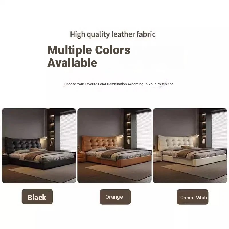 Italian Minimalist Black Leather Frame Bed - High-End Luxury Double Box Bed with Gas Lift Storage for Modern Master Bedrooms