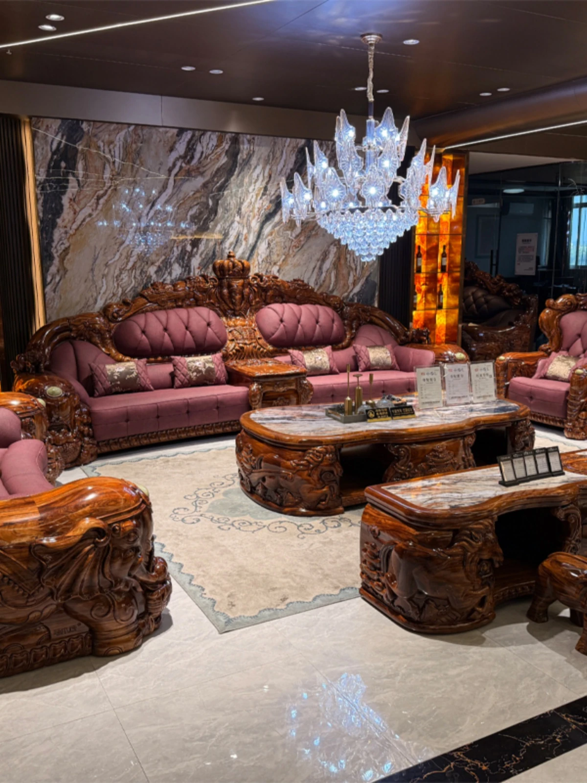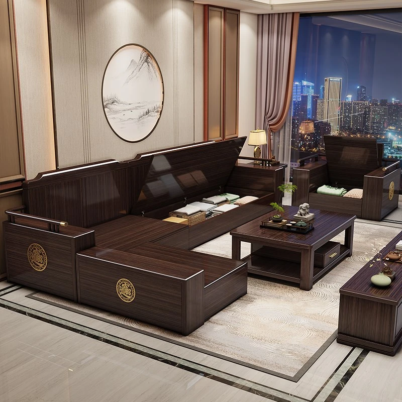 New Chinese Style Solid Wood Sofa Set - Luxurious Purple Gold Sandalwood for Living Room, Ideal for All Sizes, Winter/Summer Versatile with Storage Features