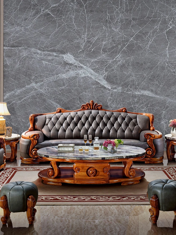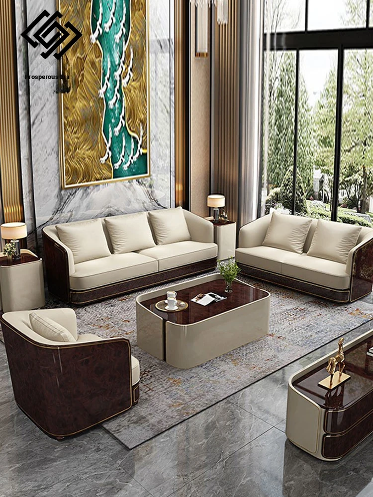 2025 New European Style Solid Black Walnut Leather Sofa Set - Perfect for Spacious Villas and Modern Chinese Living Rooms