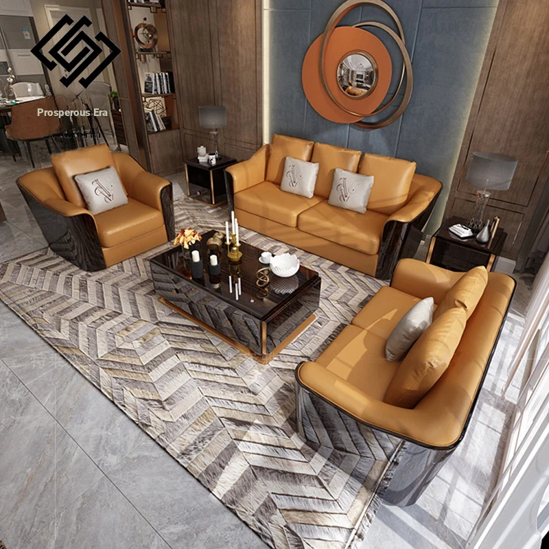 Post-Modern Luxury Sofa Set - Italian Villa Style Bentley High-End 123 Combination Leather and Solid Wood Furniture for Spacious Living Rooms