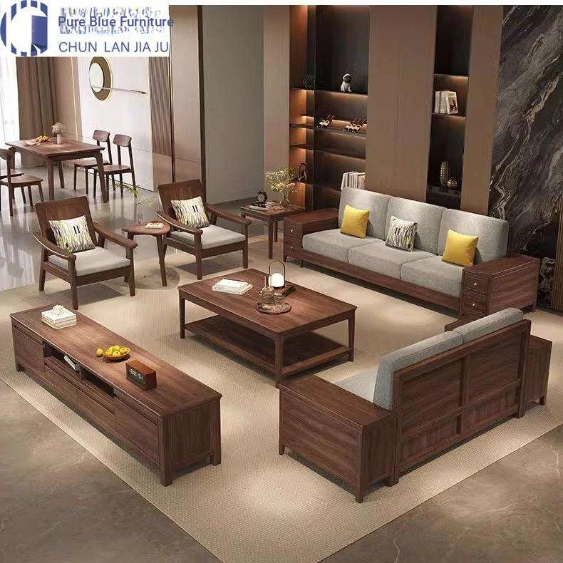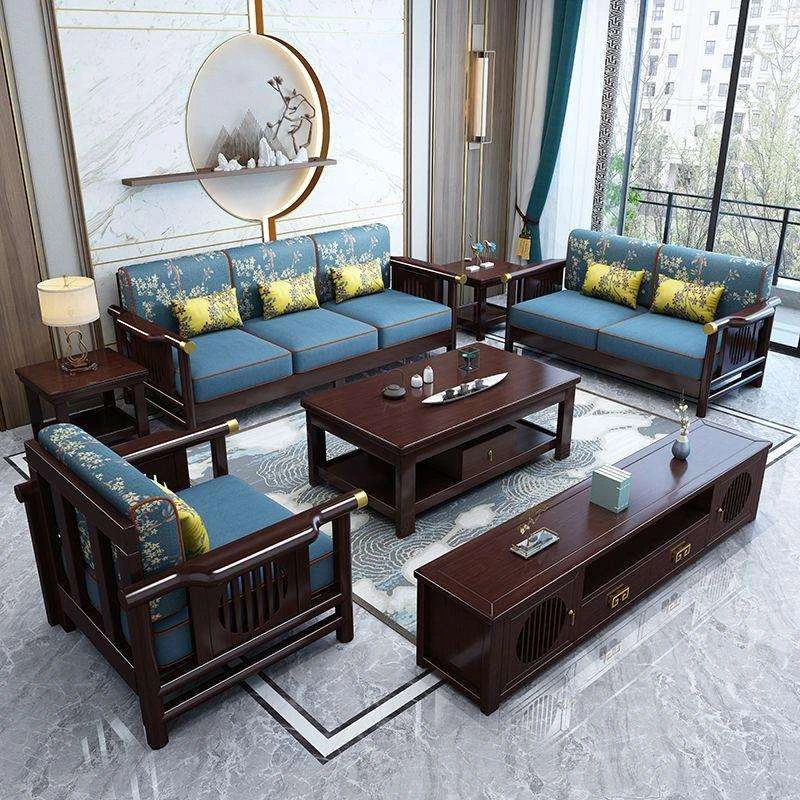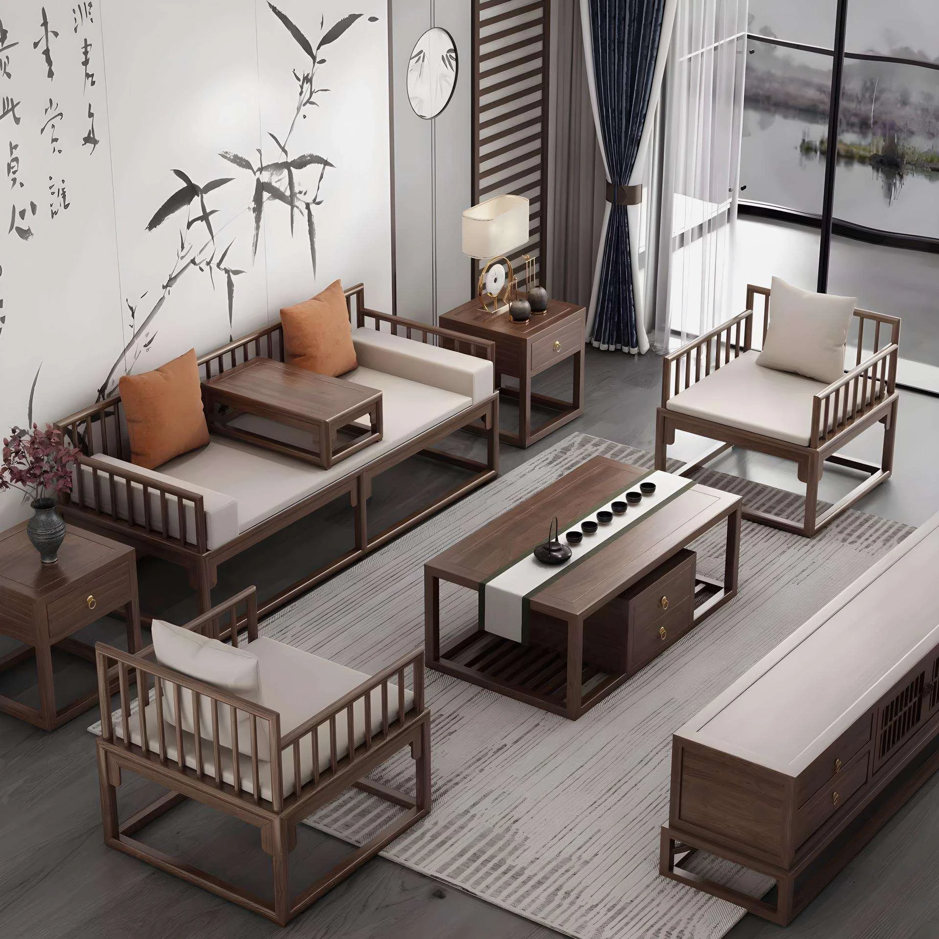 New Chinese Style Black Walnut Solid Wood Sofa Set - Versatile for Winter and Summer, Storage Chaise Lounge, Perfect for Any Home Size, Ideal Living Room Furniture