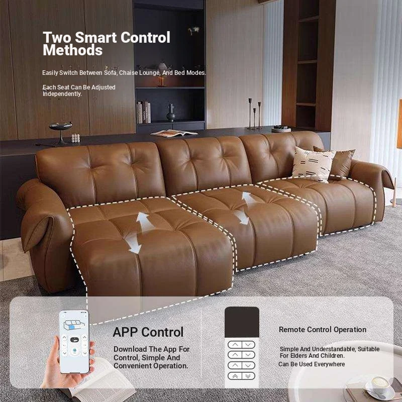 Modern Minimalist Hydraulic Sofa Bed - Versatile, Space-Saving Design with Electric Function, Genuine Leather, Perfect for Living Rooms and Wall Placement, Blending Contemporary Style with Classic Elegance.