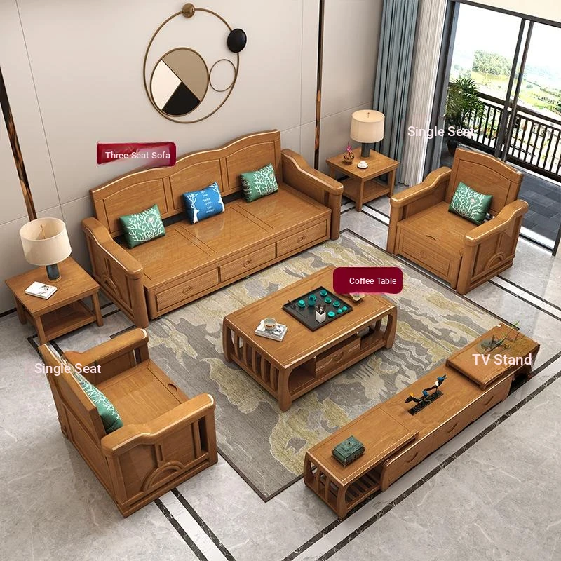 Modern Chinese Minimalist Solid Wood Sofa Set for Living Room - Perfect for Small Spaces, Corner Design, Stylish and Functional Furniture