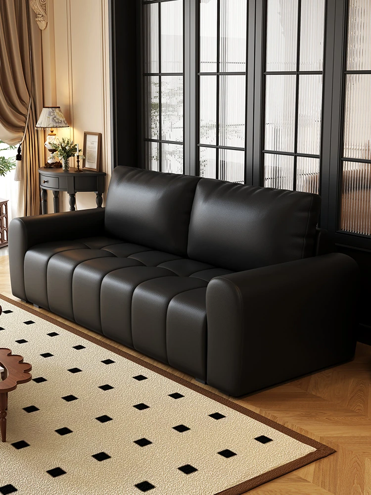 French Vintage Black Leather Sofa for Living Room - Chic and Compact Design for Small Spaces, Perfect for Fashion Boutiques - New Arrival 2025