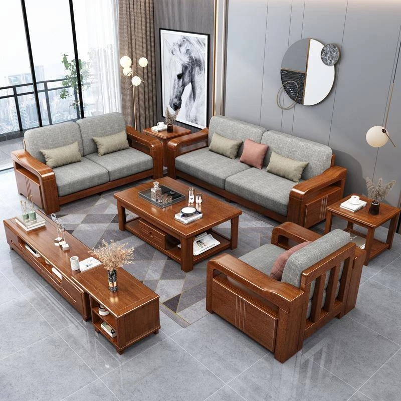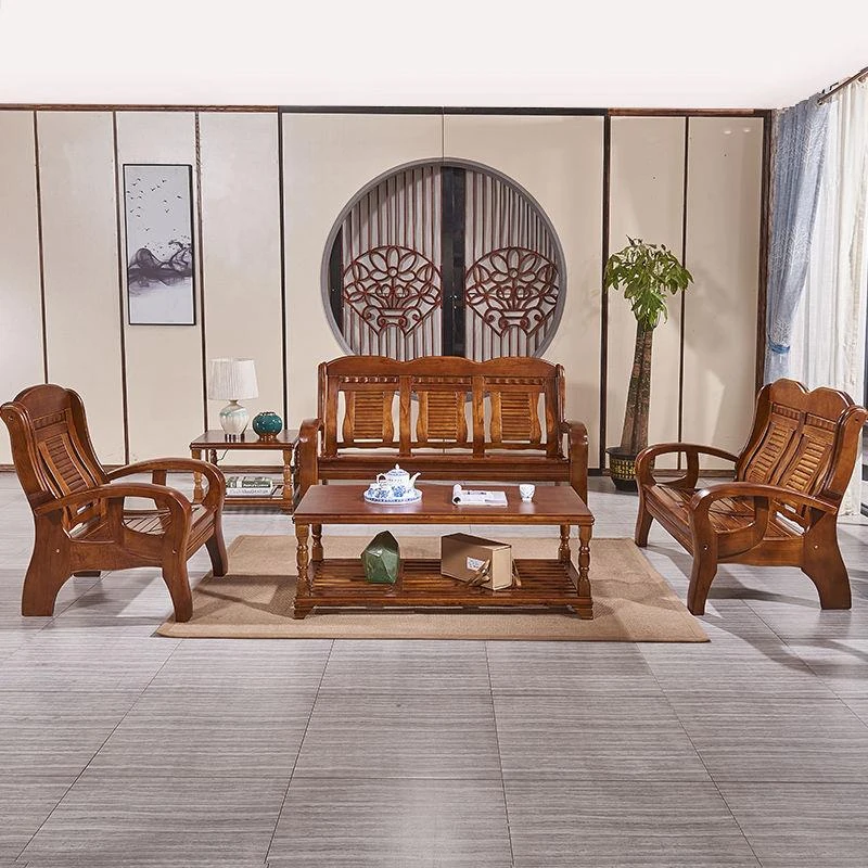 Modern Chinese Solid Wood Sofa Set - 1+2+3 Combination, All Solid Wood, Perfect for Small Spaces and Rural Homes, Stylish and Durable Living Room Sofa Collection