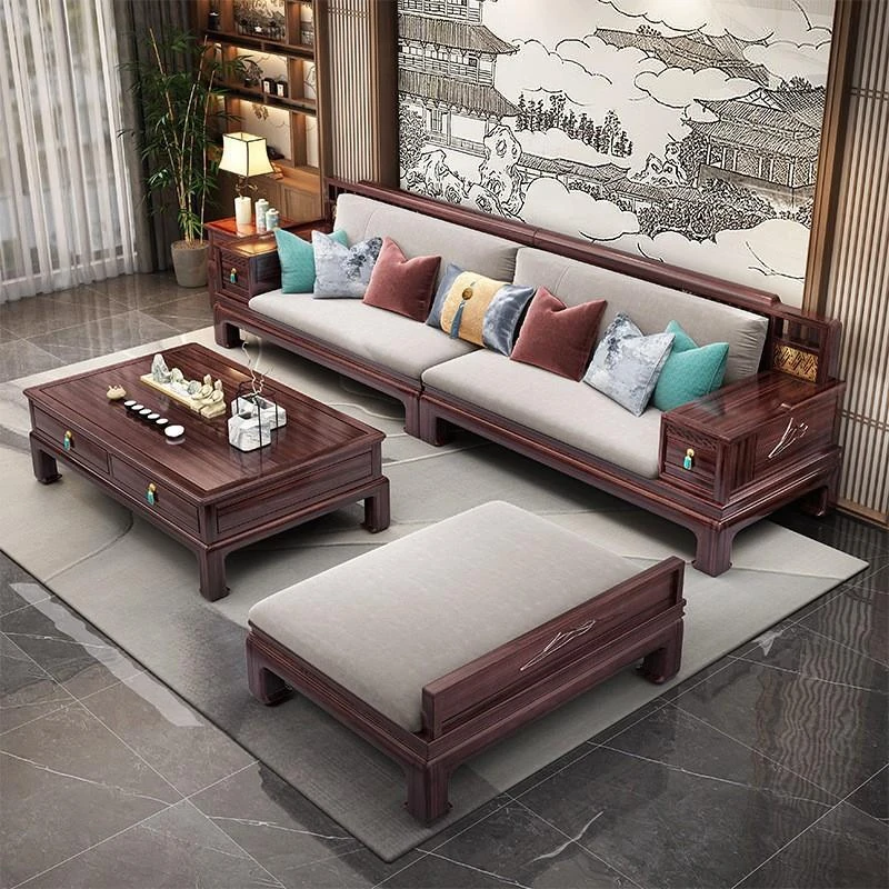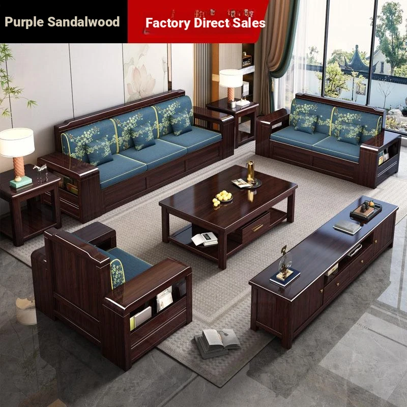 Zijin Rosewood Solid Wood Sofa Set - New Chinese Style, Washable and Versatile for All Seasons, Perfect for Small to Large Living Rooms, with Storage Solutions.