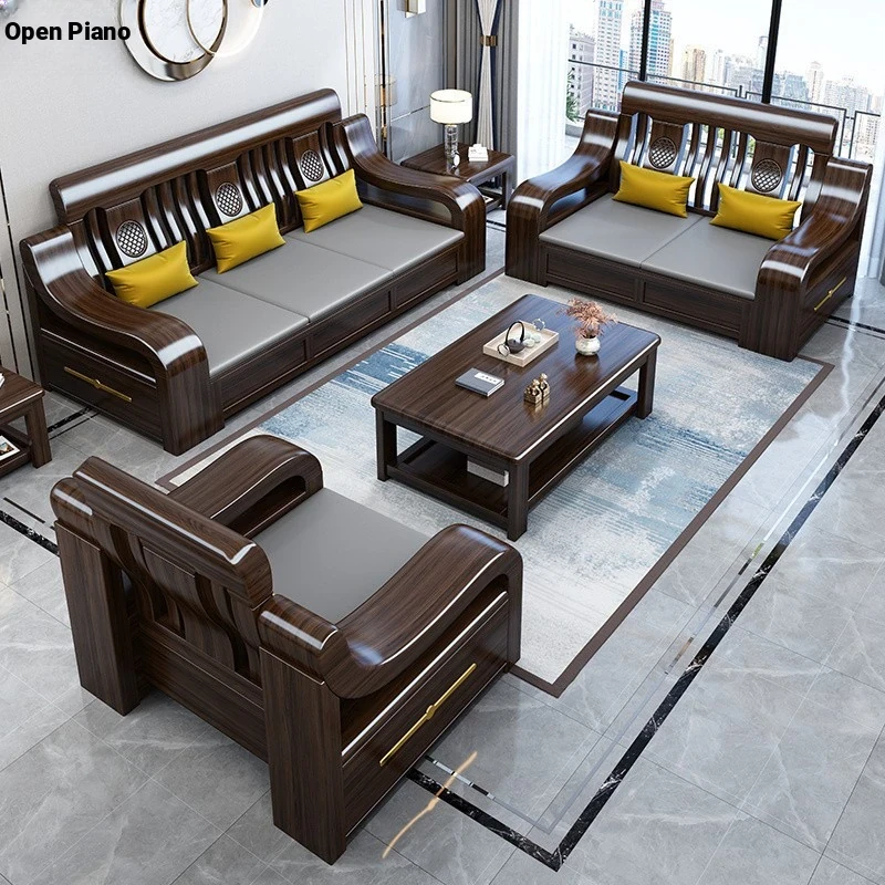 Modern Chinese Walnut Wood Living Room Sofa - Y11# Full Solid Wood Design, Perfect for Winter and Summer Use, Ideal for Small and Large Spaces, Stylish and Functional Storage Solution.