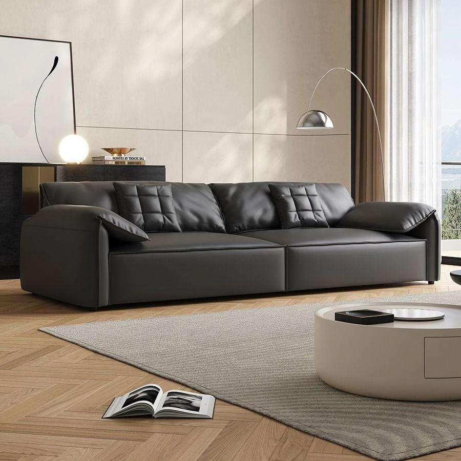 Italian Minimalist Large Elephant Ear Genuine Leather Sofa for Living Room - Modern Simple Design, Extra Wide Seat and Deep Comfort, Perfect for Any Space
