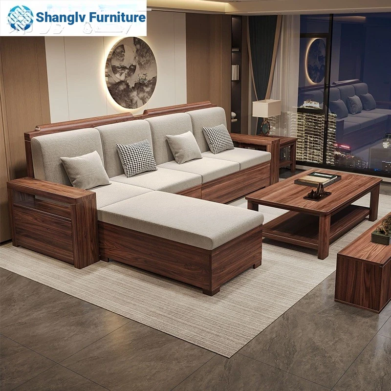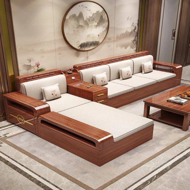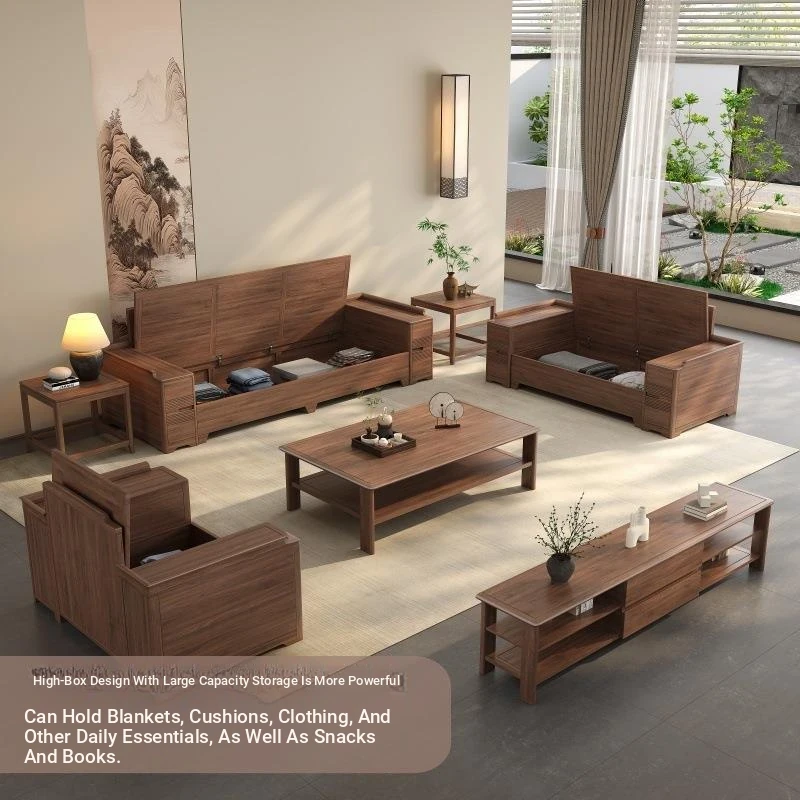 2025 New Black Walnut Chinese Style Solid Wood Sofa Set - Elegant L8120 for Living Room, Features Summer-Winter Dual Use and Storage Solutions