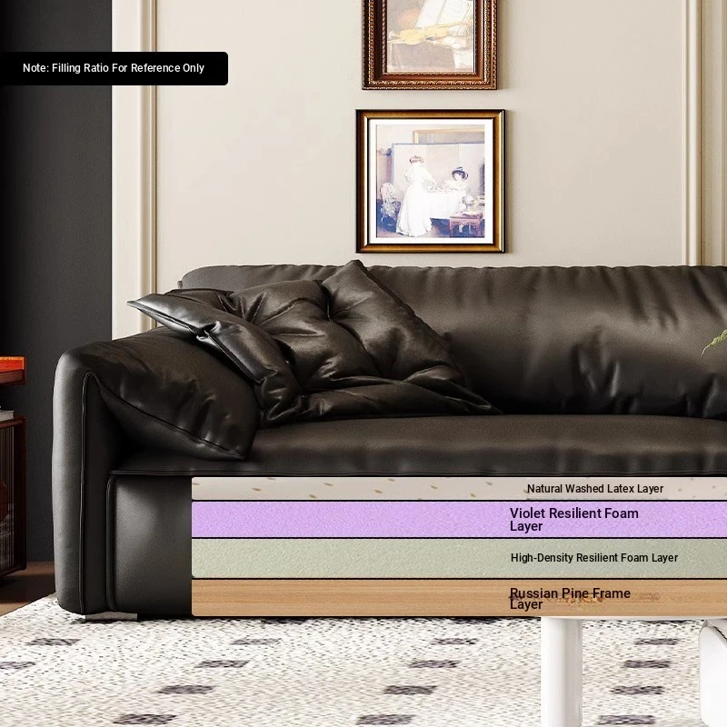 American-style Luxury Genuine Leather Soft Package Sofa - Modern Minimalist European High-end Solid Wood Furniture for Spacious Living Rooms and Combinations