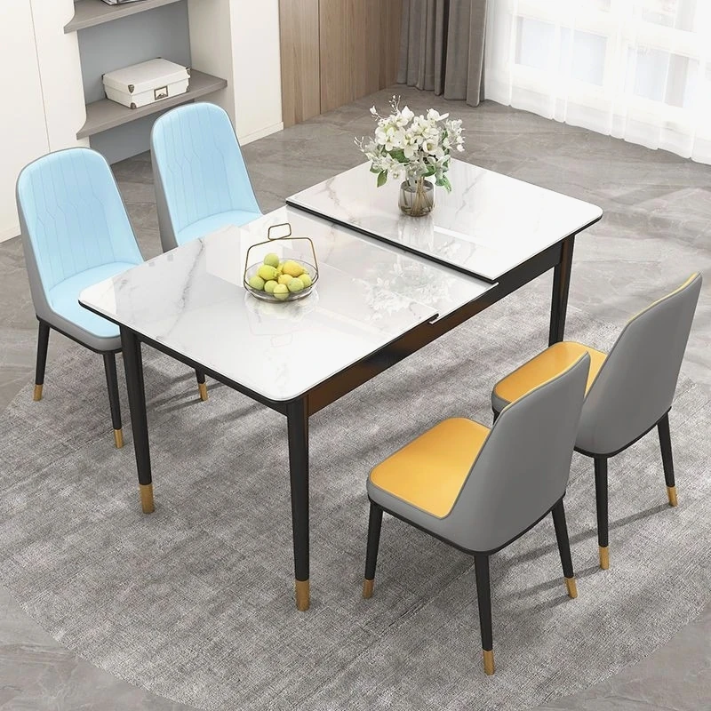 Stylish Rock Plate Dining Table and Chair Set - Space-Saving Solid Wood Folding Table for Small Homes, Multi-Functional Expandable Dining Table with Induction Stove Compatibility