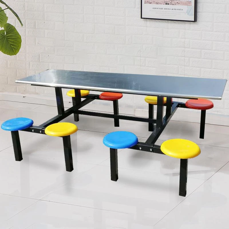 Stainless Steel Cafeteria Table and Chair Set for 4-6 People - Durable, Space-Saving Design for School, Company, and Fast Food Restaurants