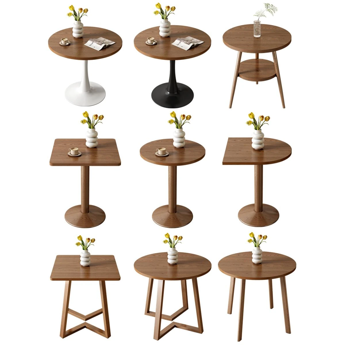 Solid Wood Bistro Table and Chair Set - Stylish Square and Round Designs for Restaurants, Burger and Dessert Shops - Perfect for Couples and Small Gatherings with Unique Single-Leg Table Structure