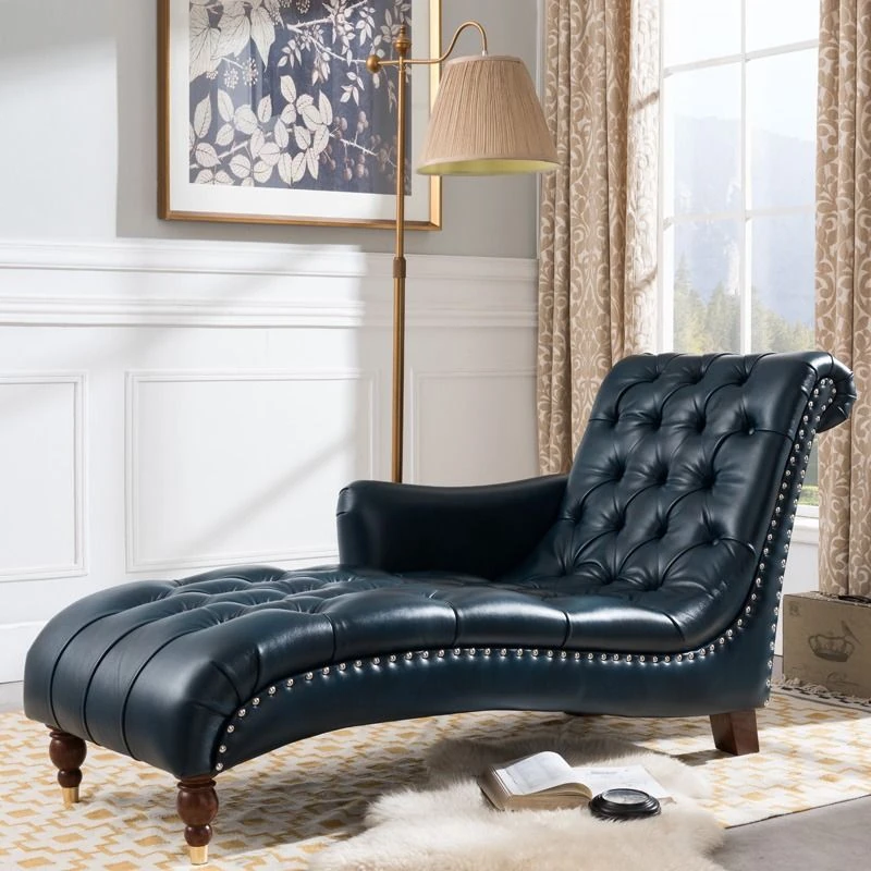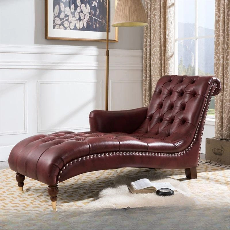 American-Style Luxury Chaise Lounge - Elegant Single Sofa Bed for Small Living Rooms and Bedrooms, Modern Leather Recliner Chair