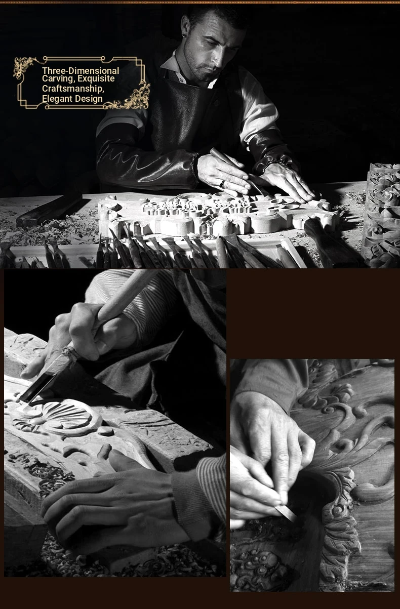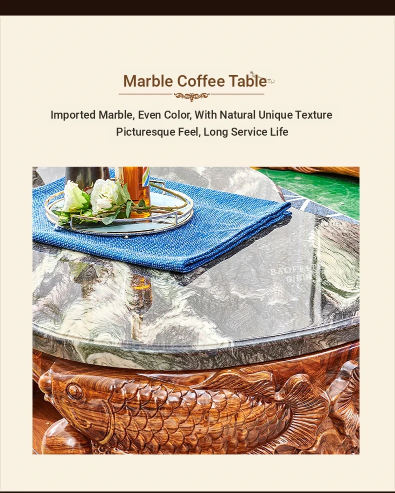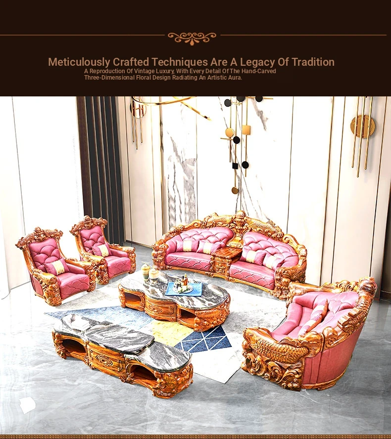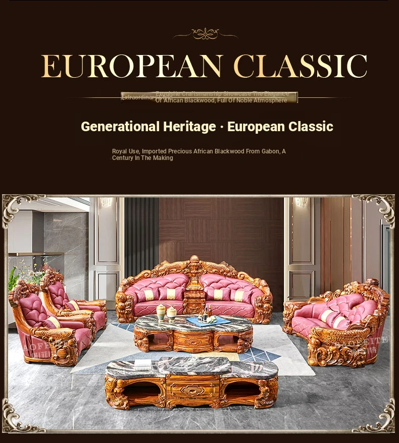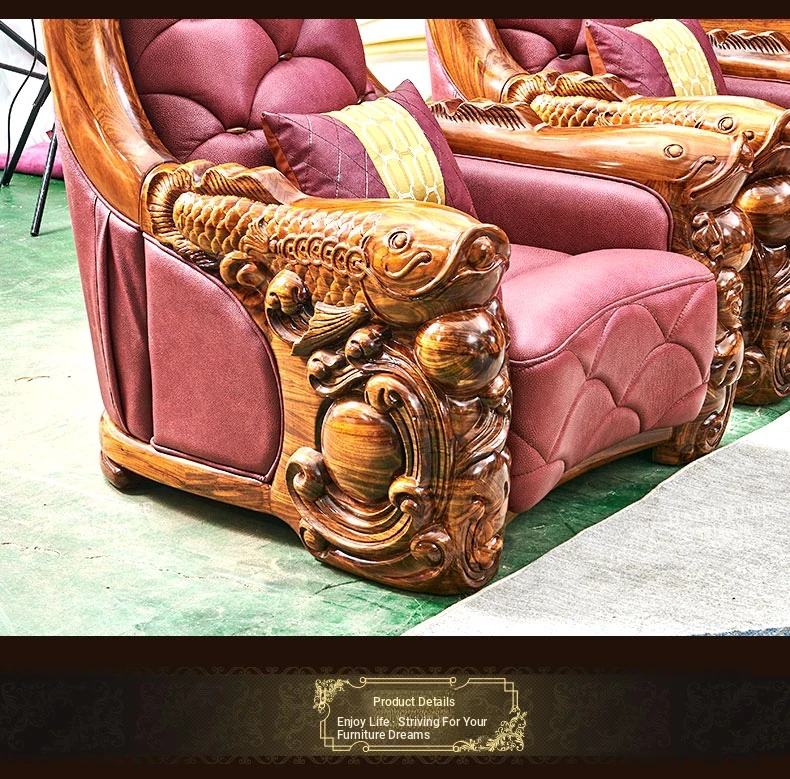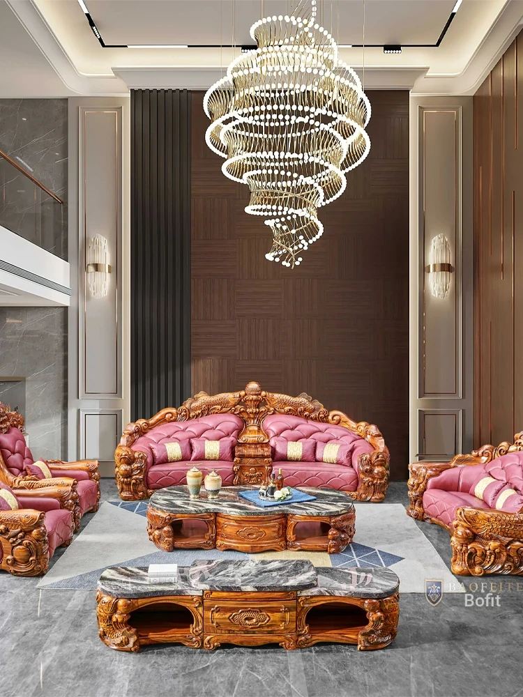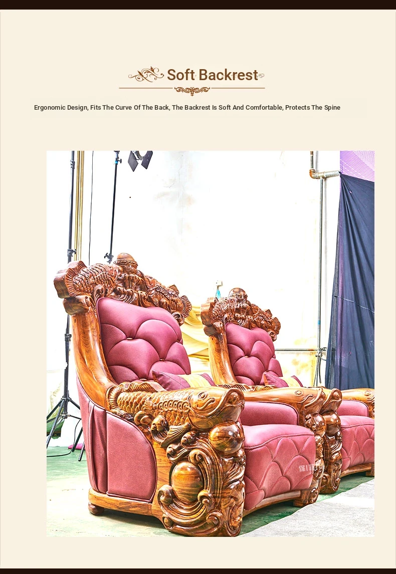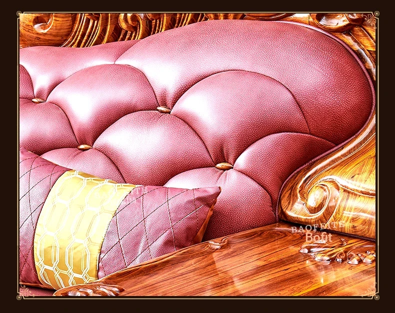 Bofeit Premium Solid Wood Carved Sofa with Top-Grade Cowhide - Luxurious Living Room Furniture Featuring "Abundance Year After Year" Design