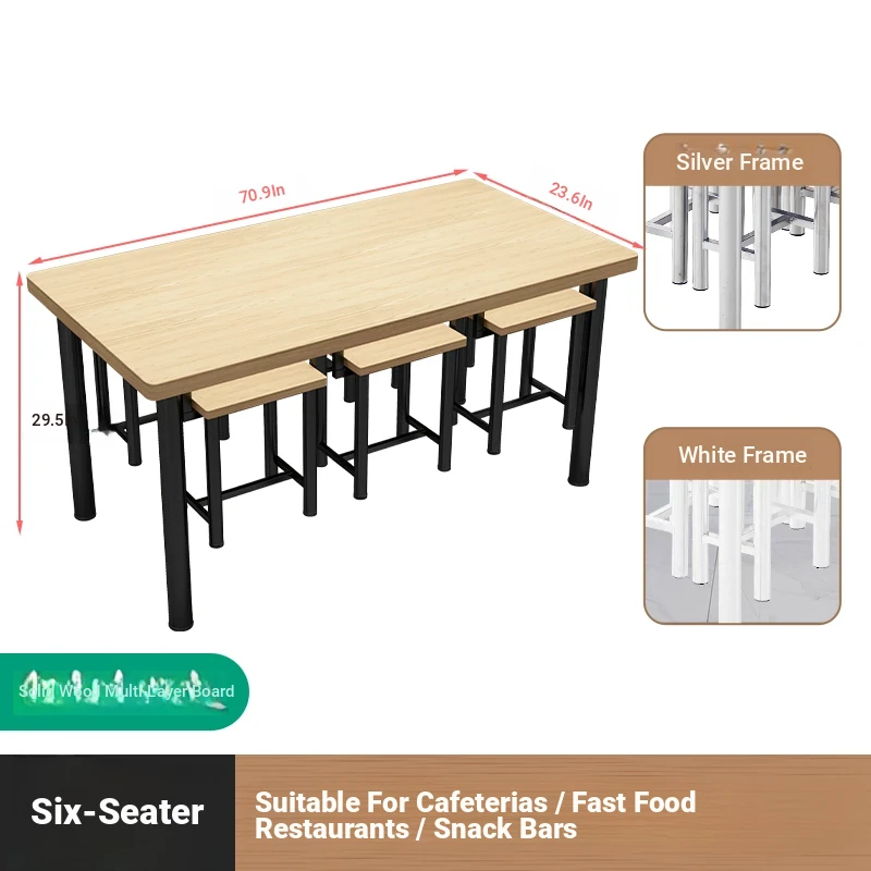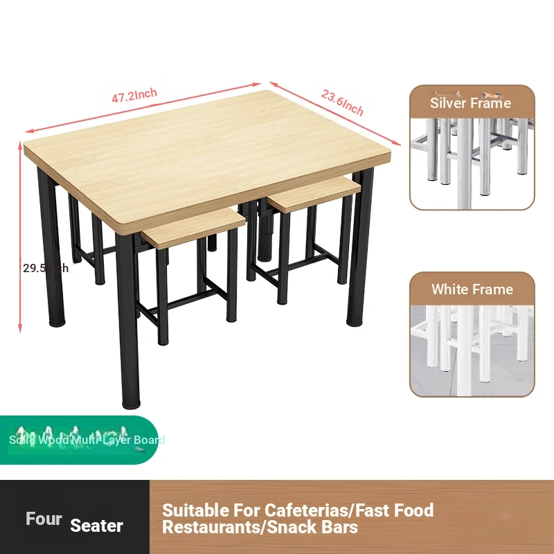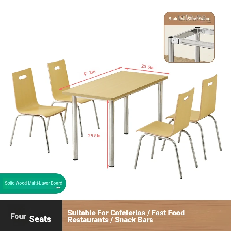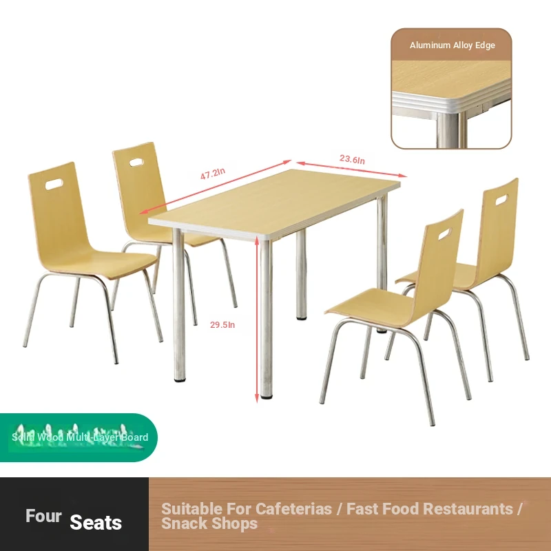 Company Canteen Dining Table and Chairs - Employee Cafeteria Furniture for 4 or 6 People, Ideal for Fast Food Restaurants and Factory Staff Dining Areas