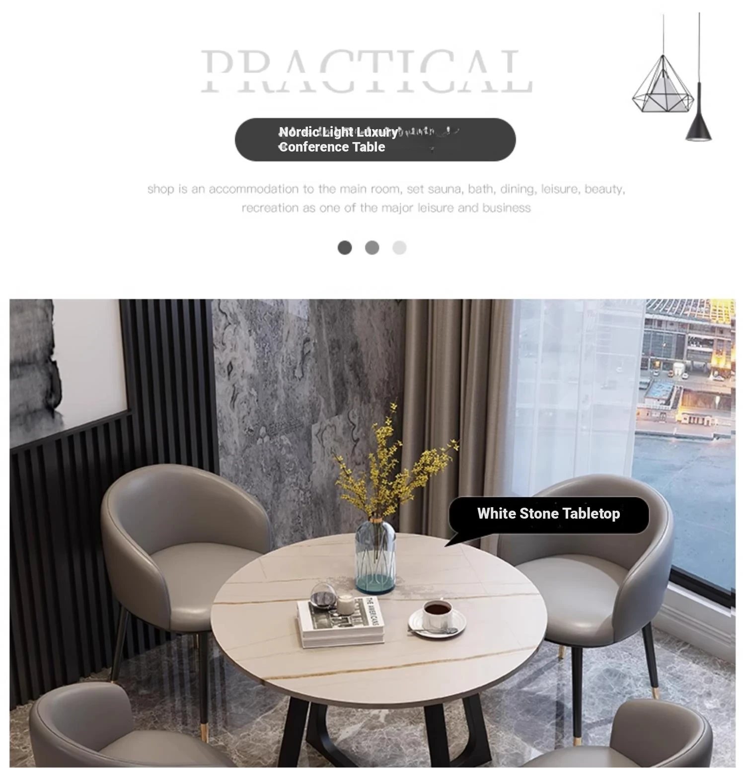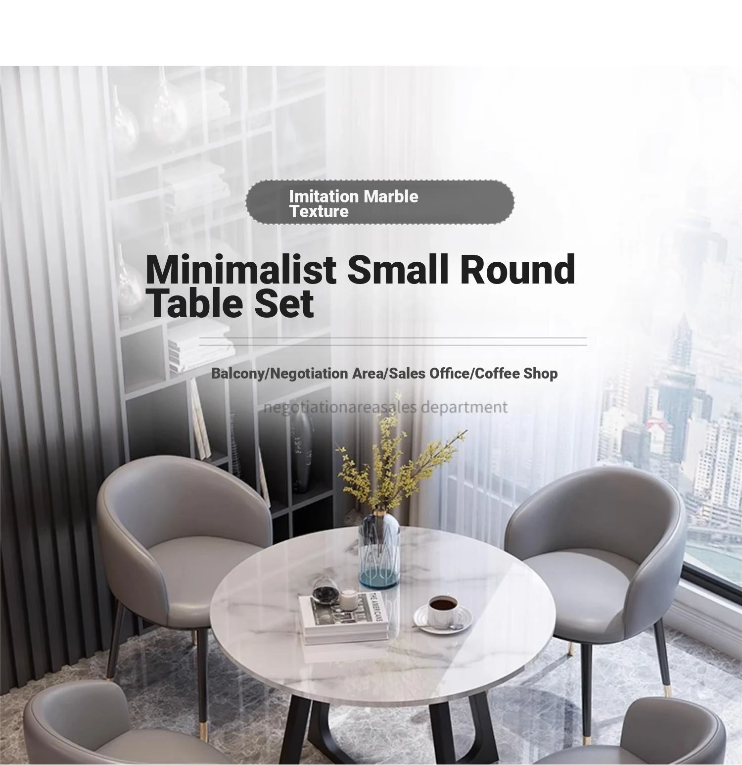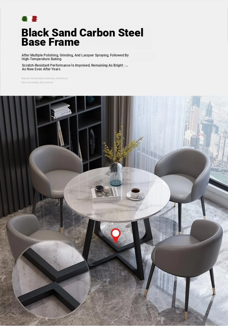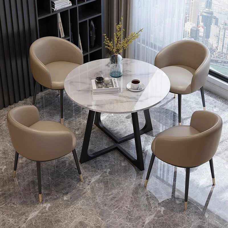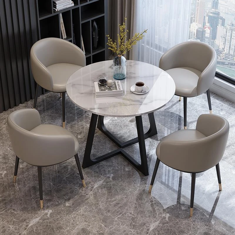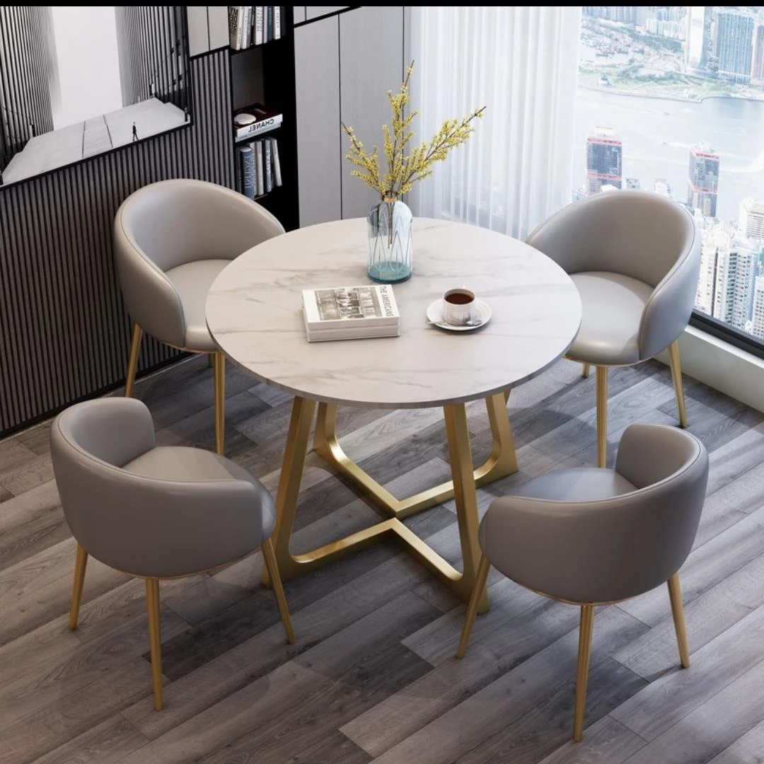 Elegant Marble Round Table and Chair Set for Reception - Modern Stone Dining Table for Sales Offices and Commercial Use, Perfect for Professional Meetings and Hospitality