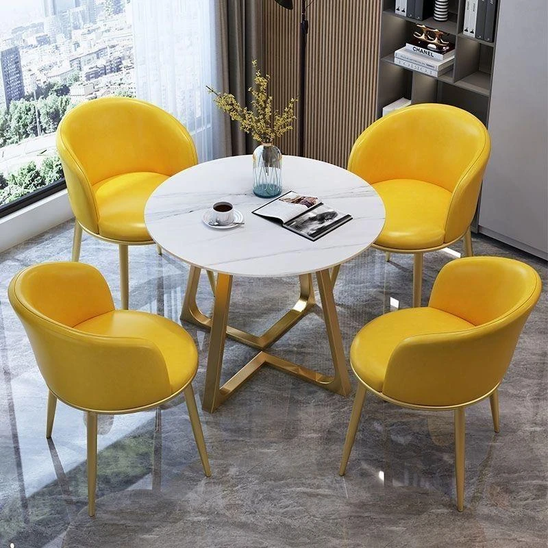 One table four chairs yellow (PU leather) Gold feet White Matte