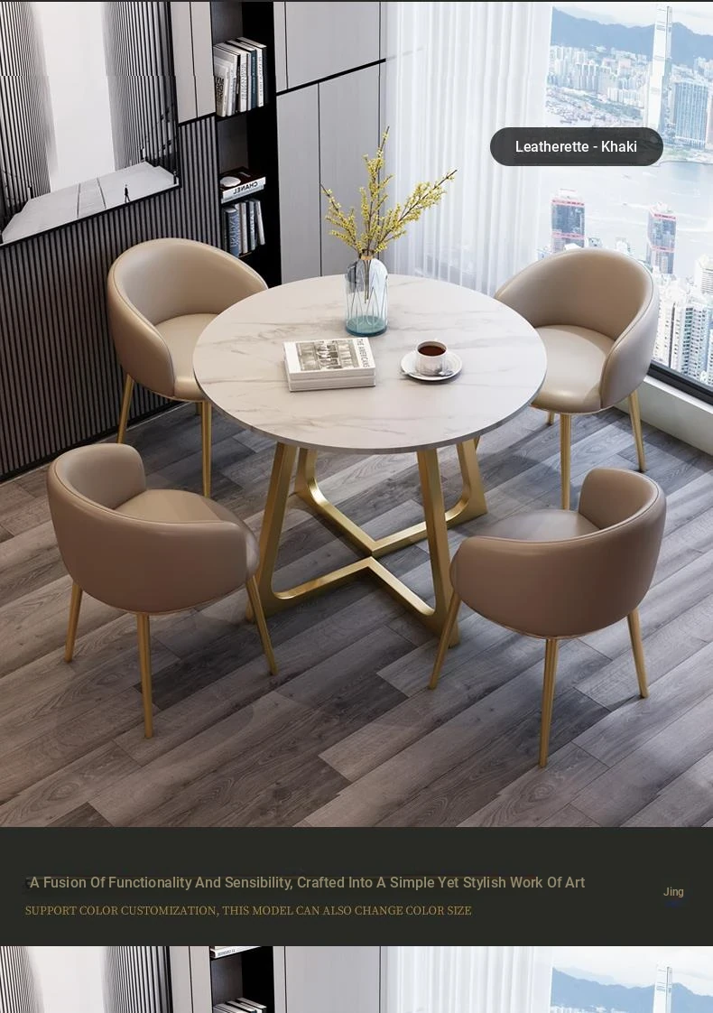 1 Table 4 black foot chair khaki PU leather imitation marble pattern