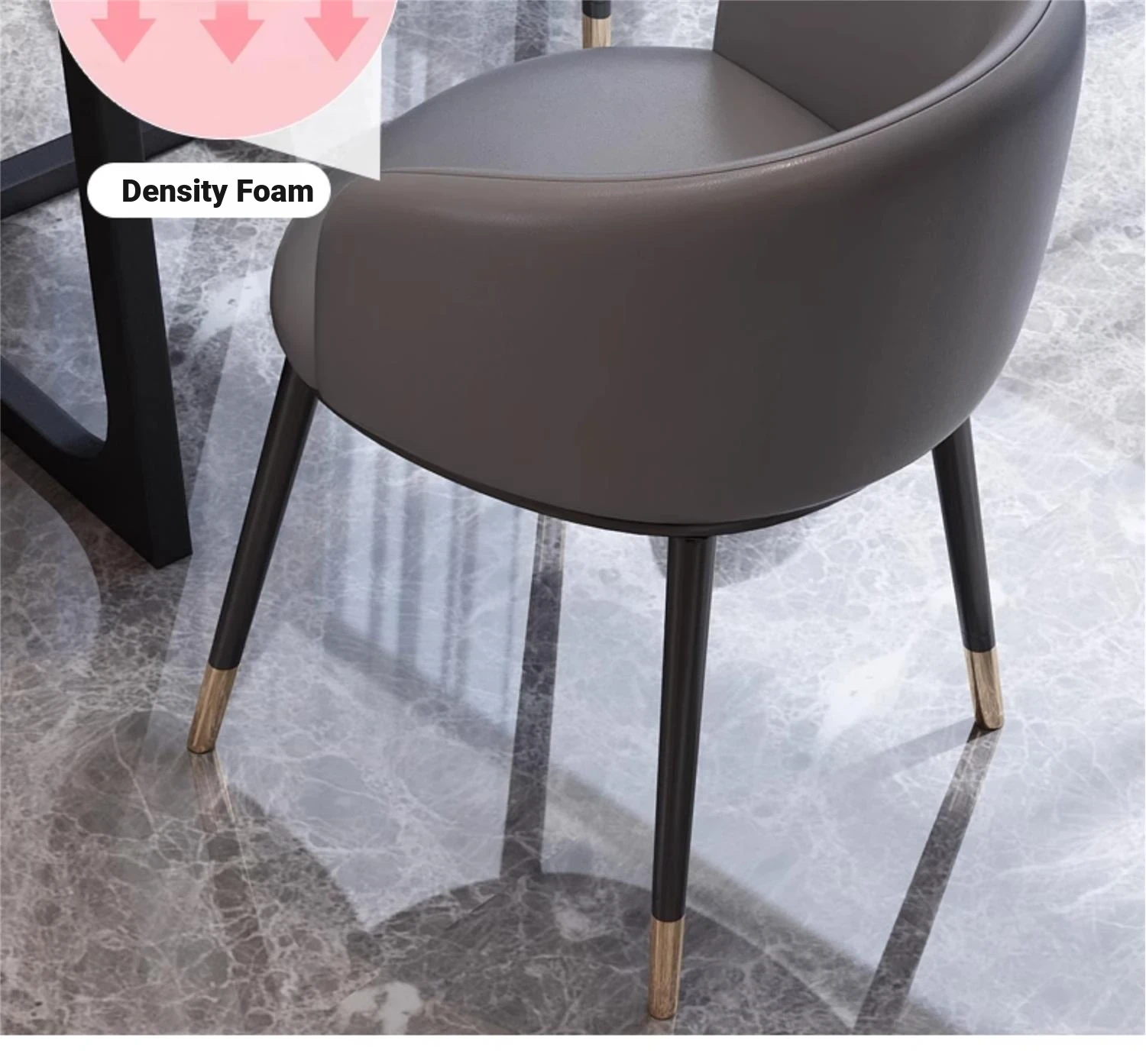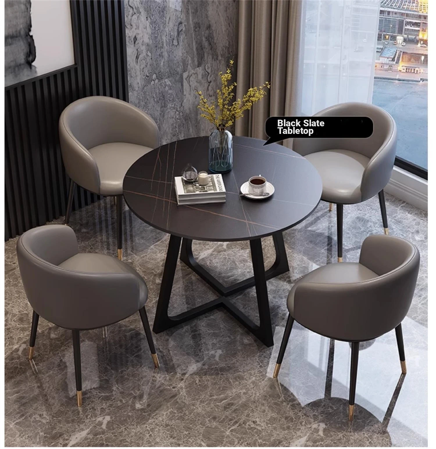 1 Table 4 black feet chair Gray (PU leather) imitation marble pattern
