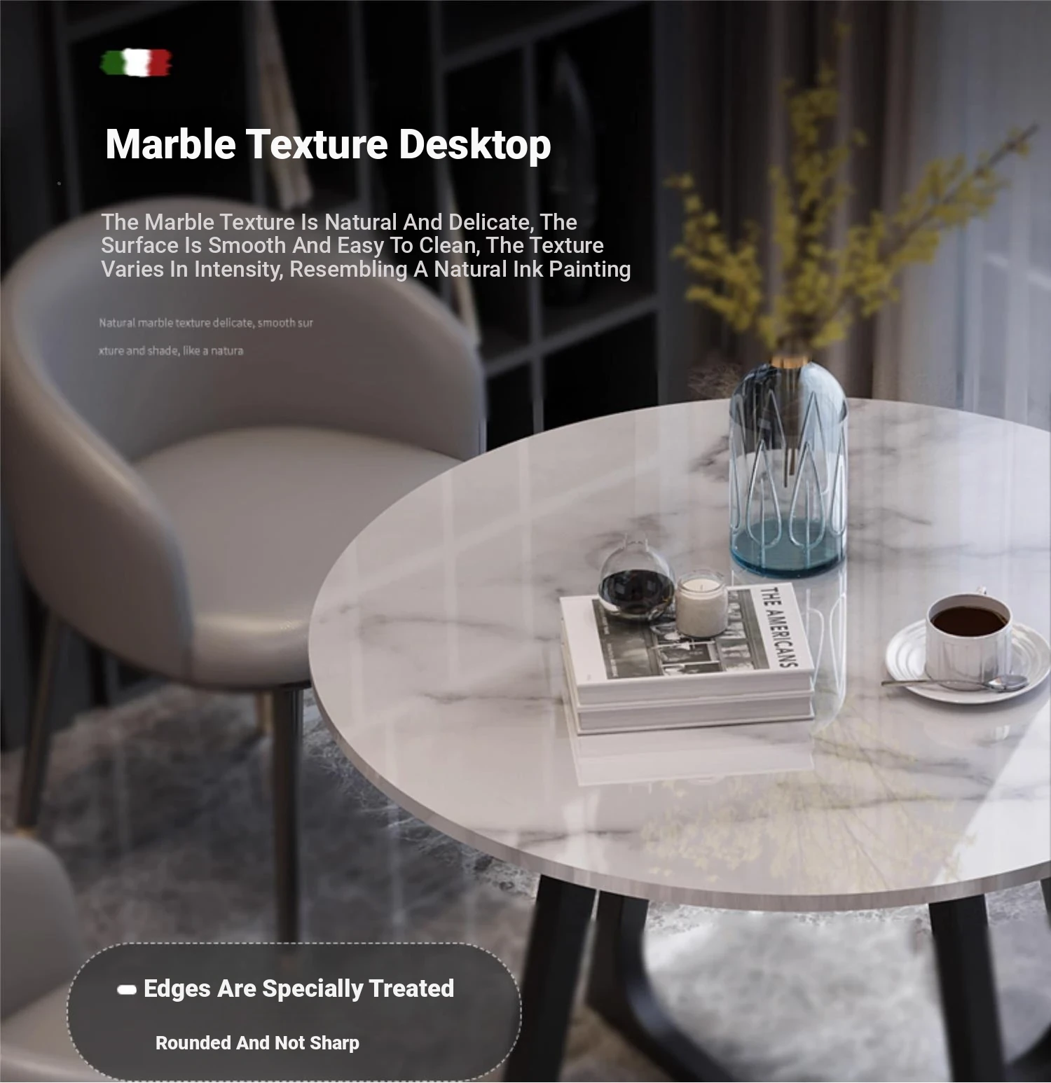1 Table 2 black feet chair photographed indicate color imitation marble pattern