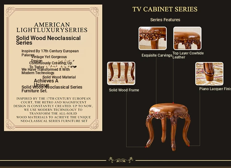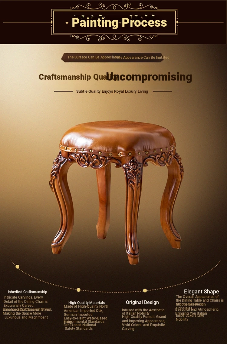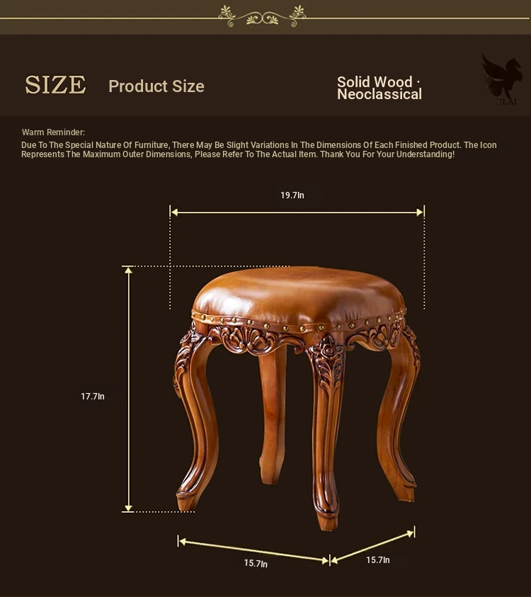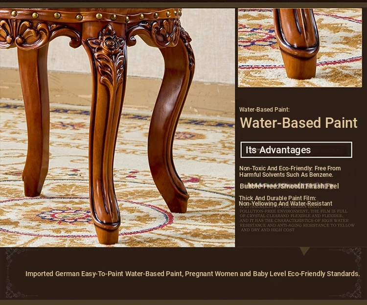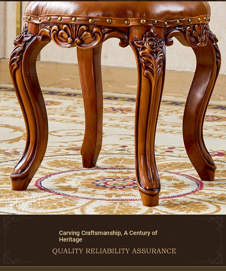 European Style Genuine Leather Vanity Stool - American Solid Wood Painted Tea Stool for Kids, Home Shoe Changing Bench, Low Stool, Bedroom Dressing Table Seat