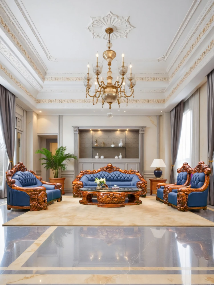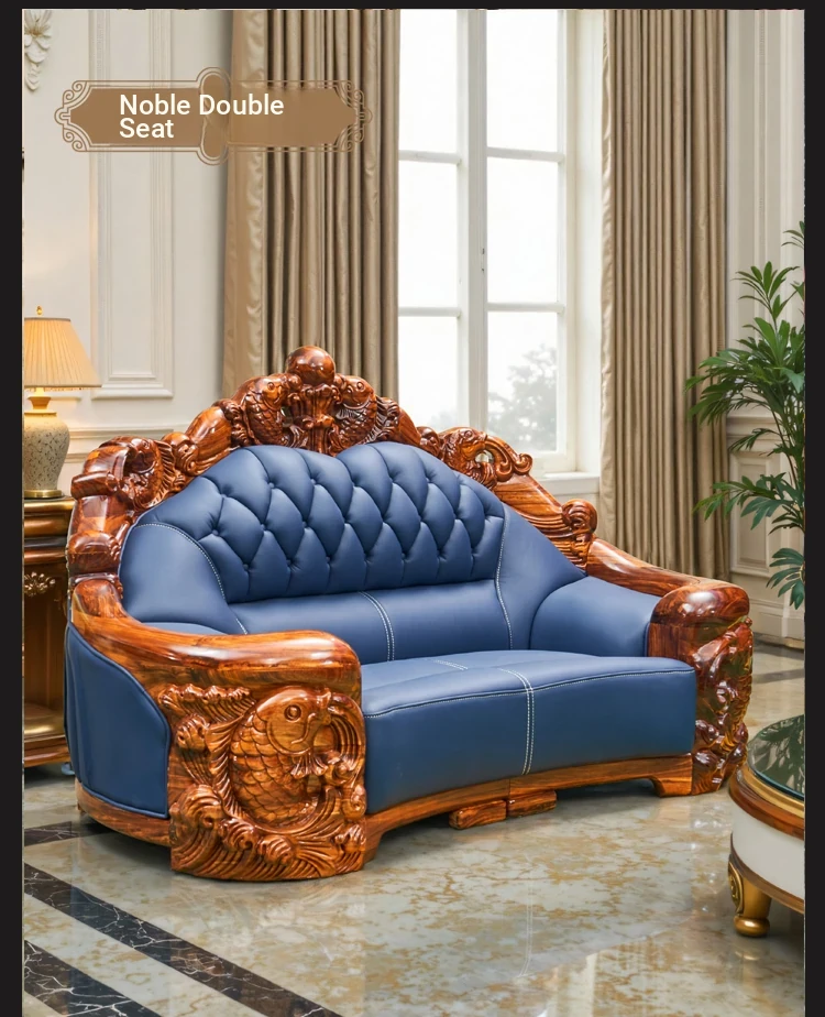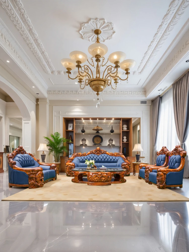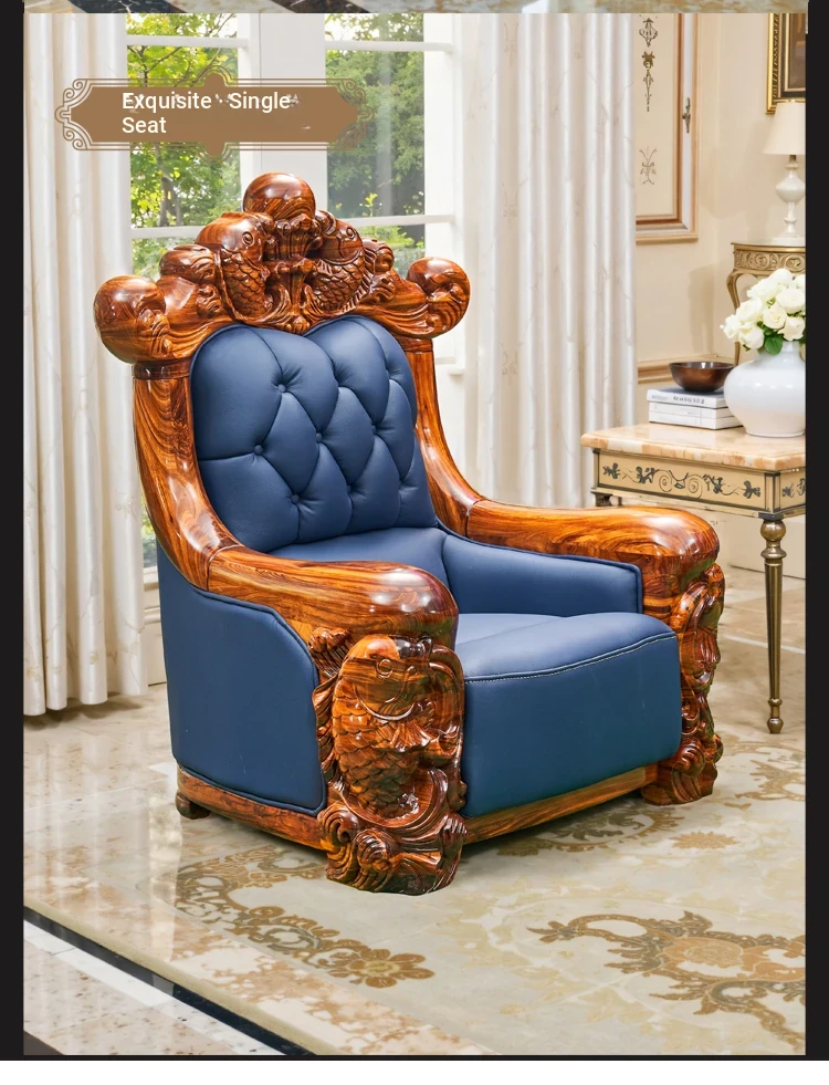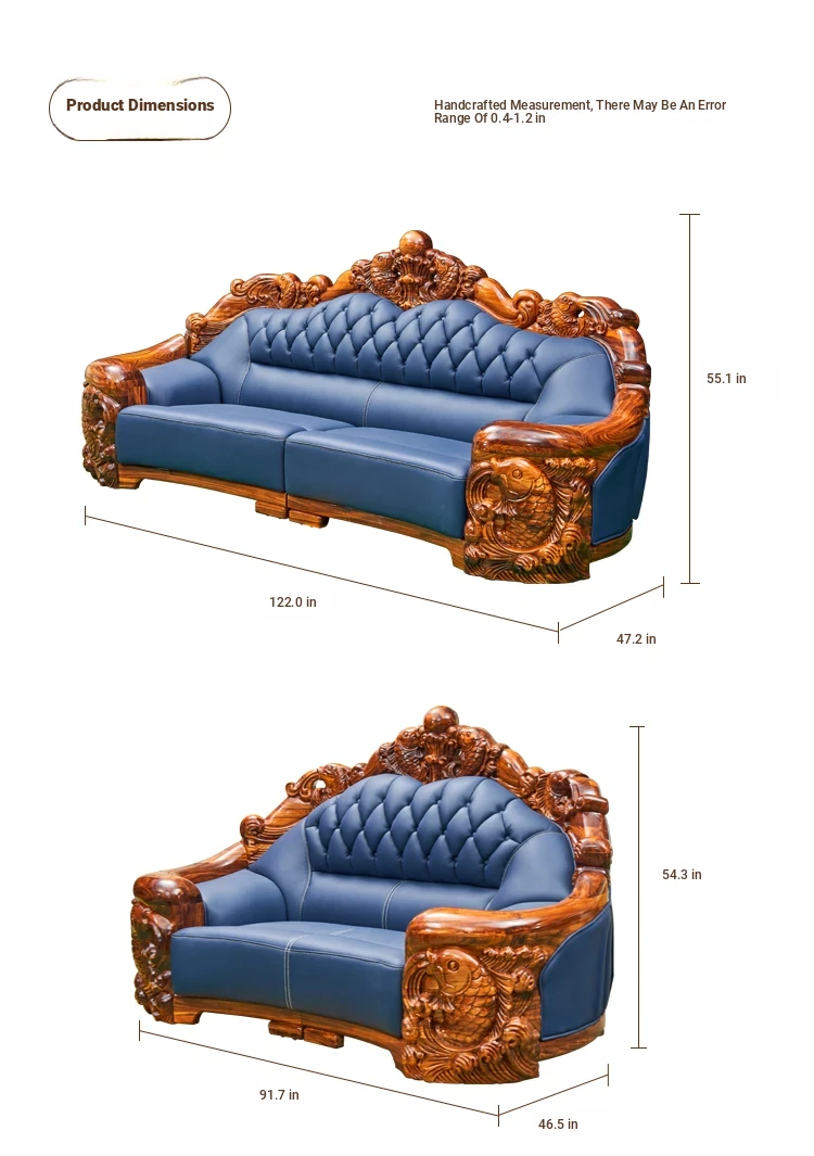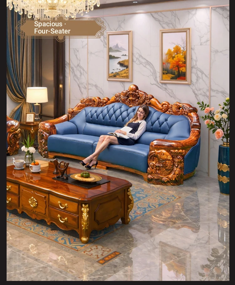 European Style Solid Wood Sofa - Luxurious Villa-Size New Chinese Design with First Layer Cowhide Leather - Comfortable 4-Seater Sofa Set for Spacious Living Rooms