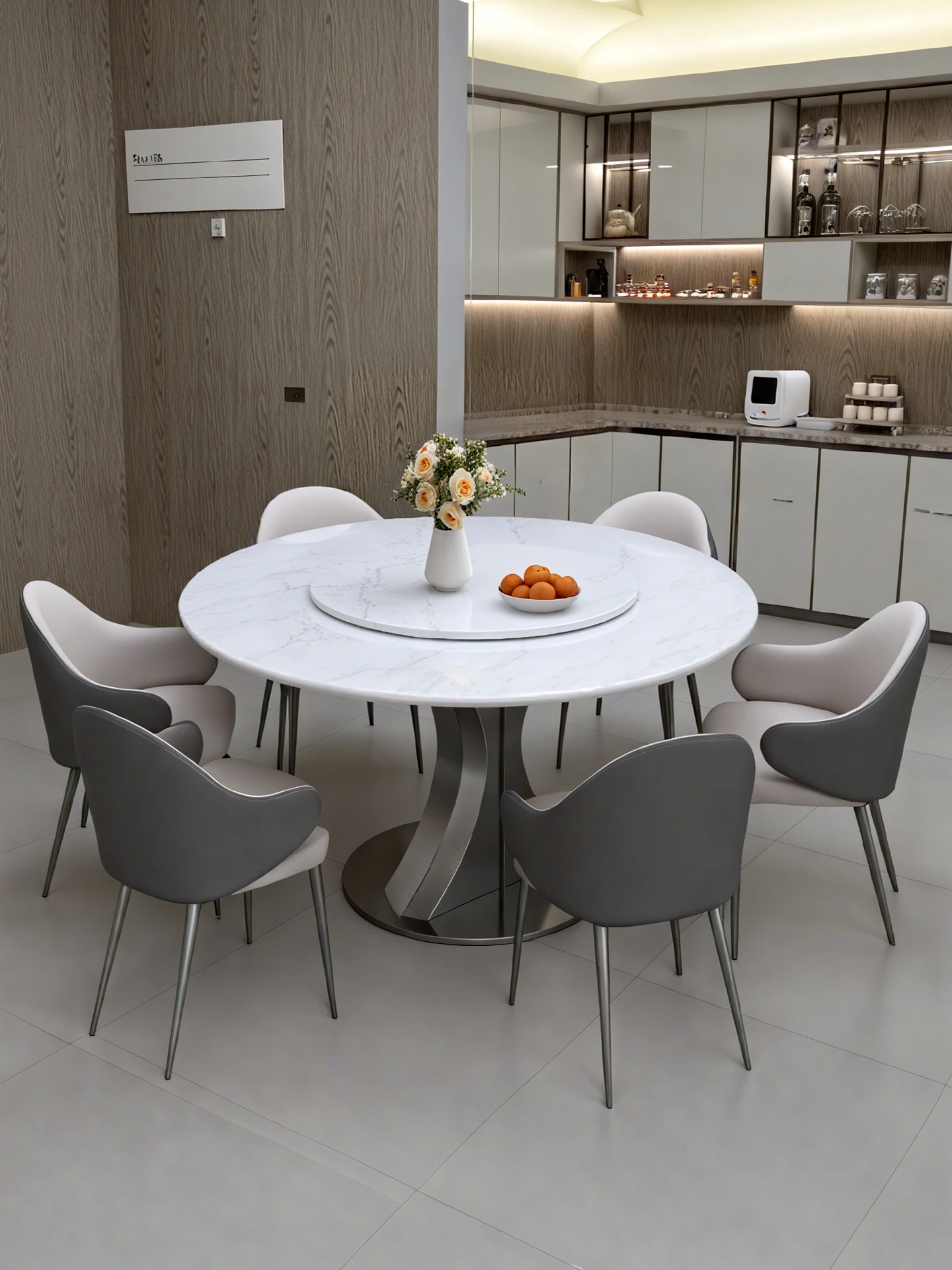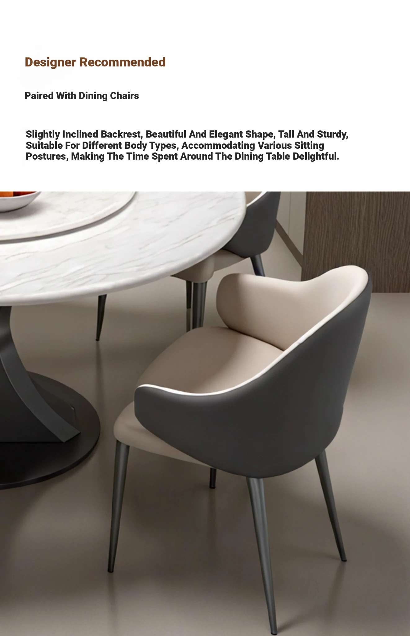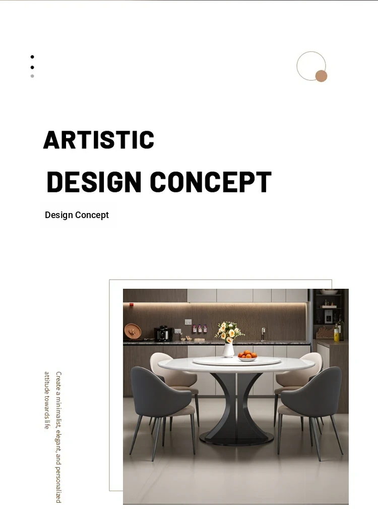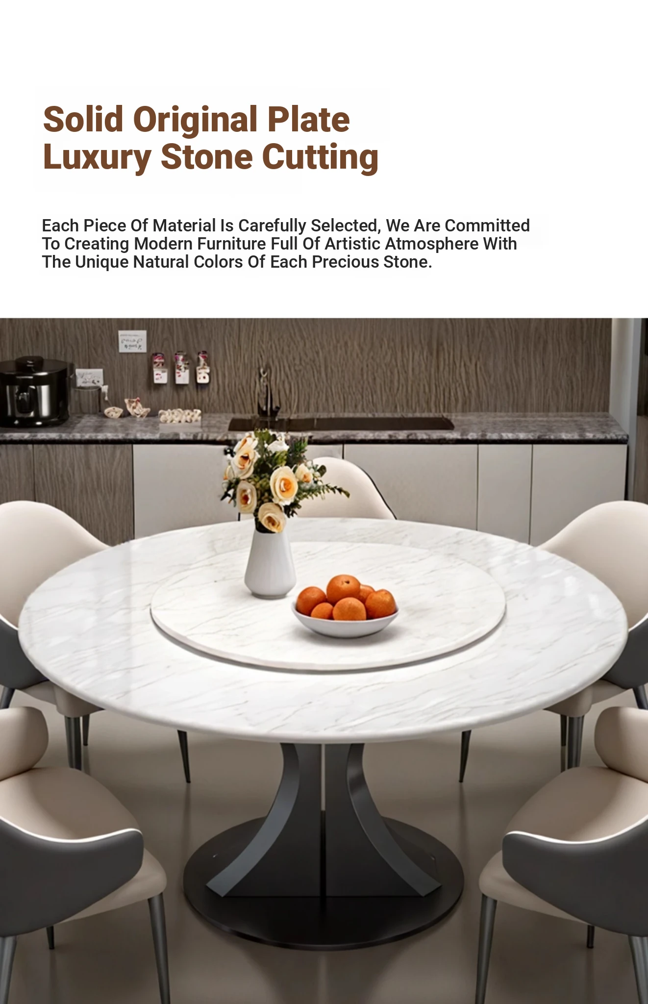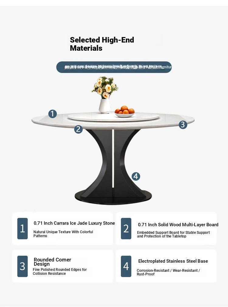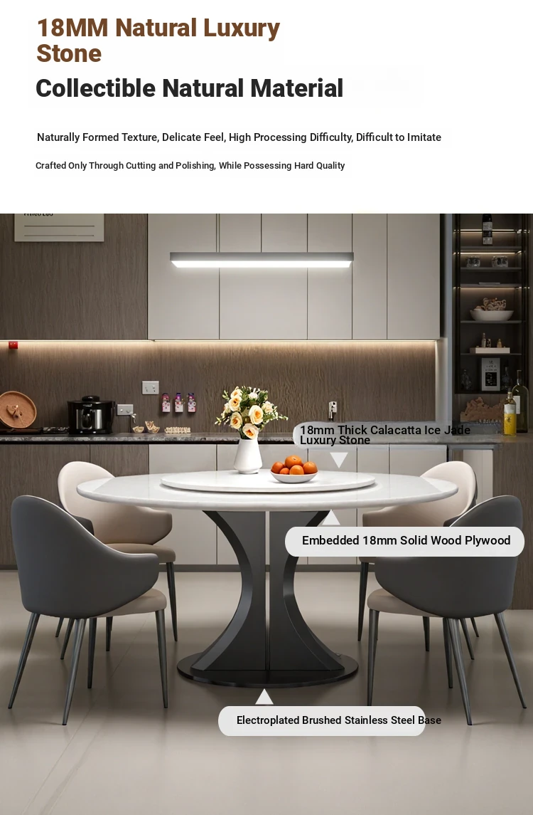 Cary Bingyu Natural Luxury Stone Round Dining Table (with Turntable) + Designer Dining Chair * 4