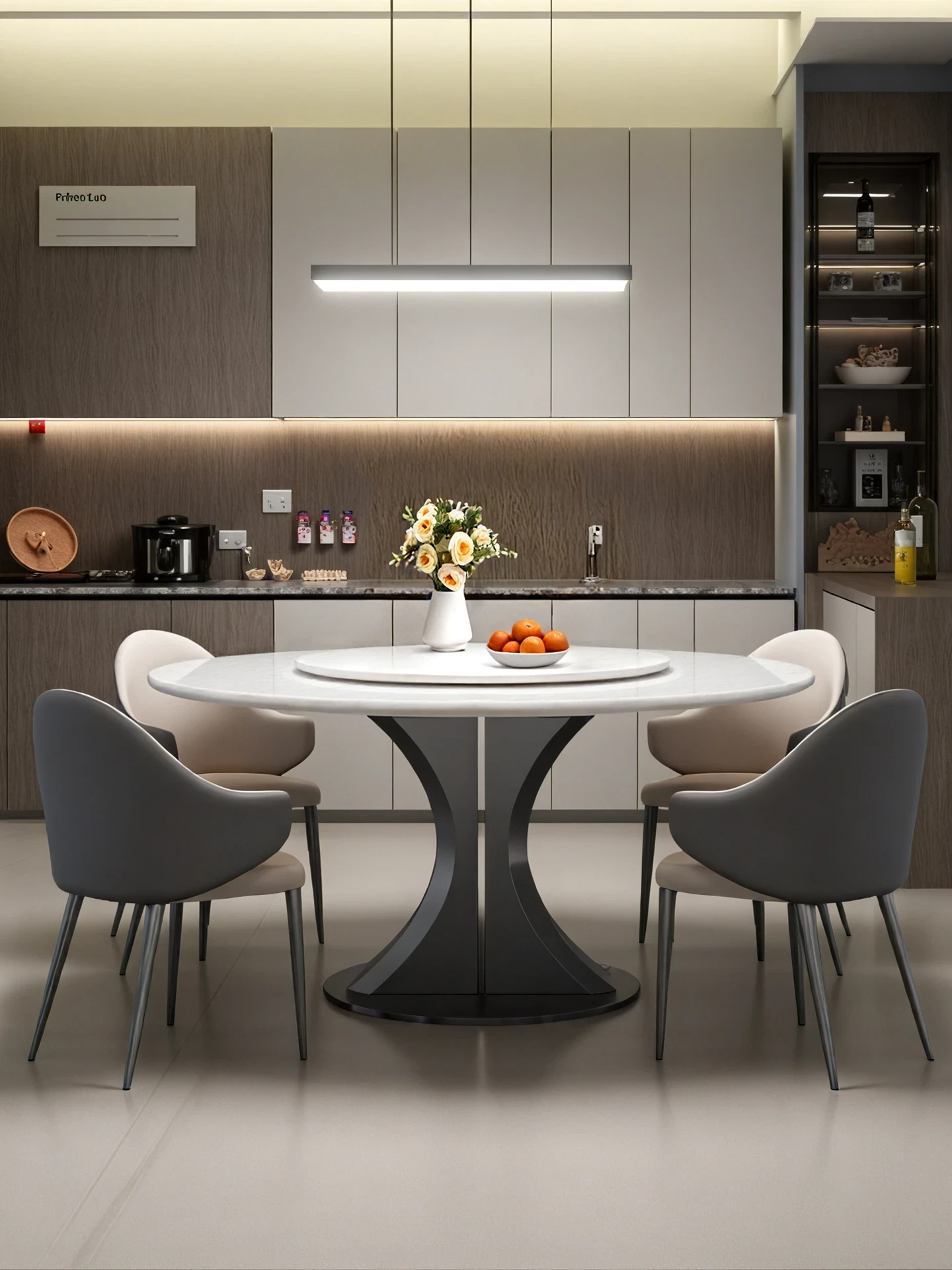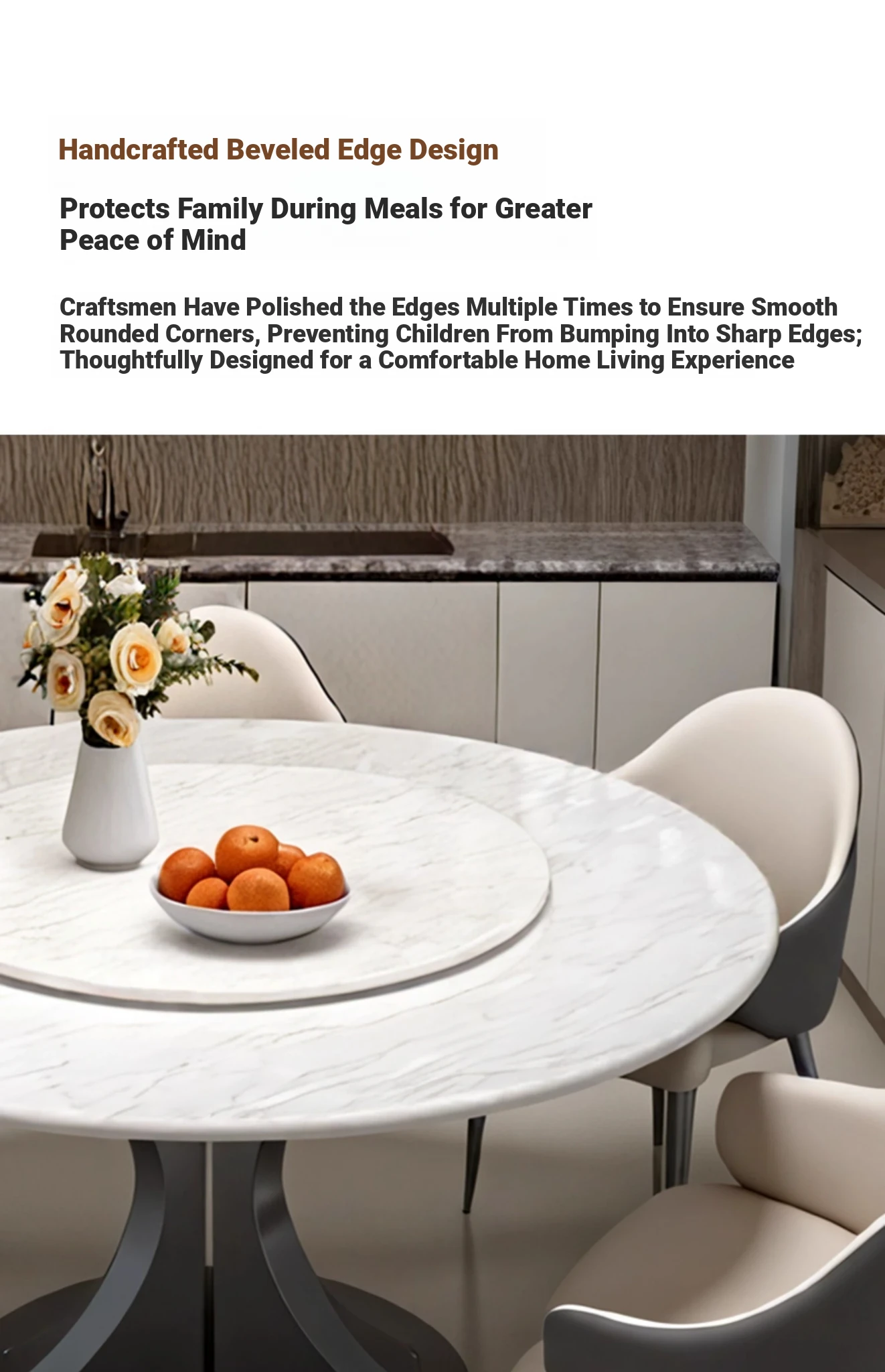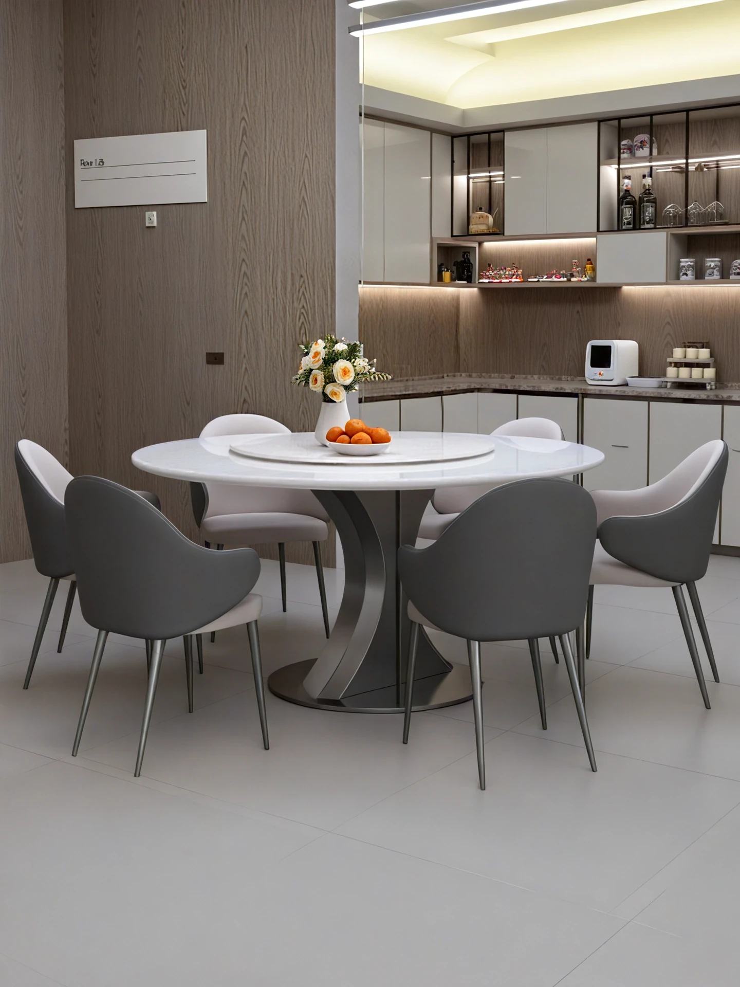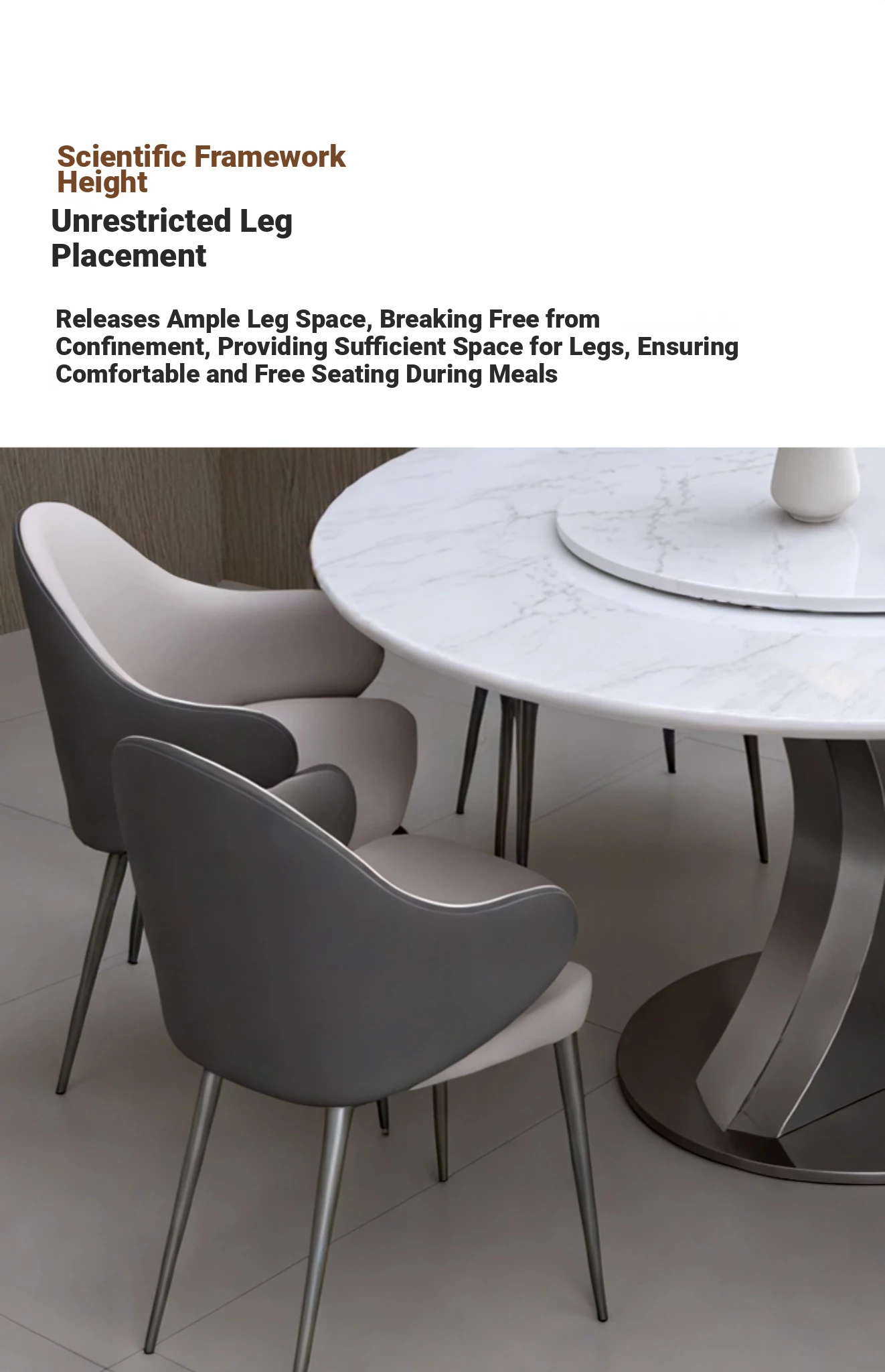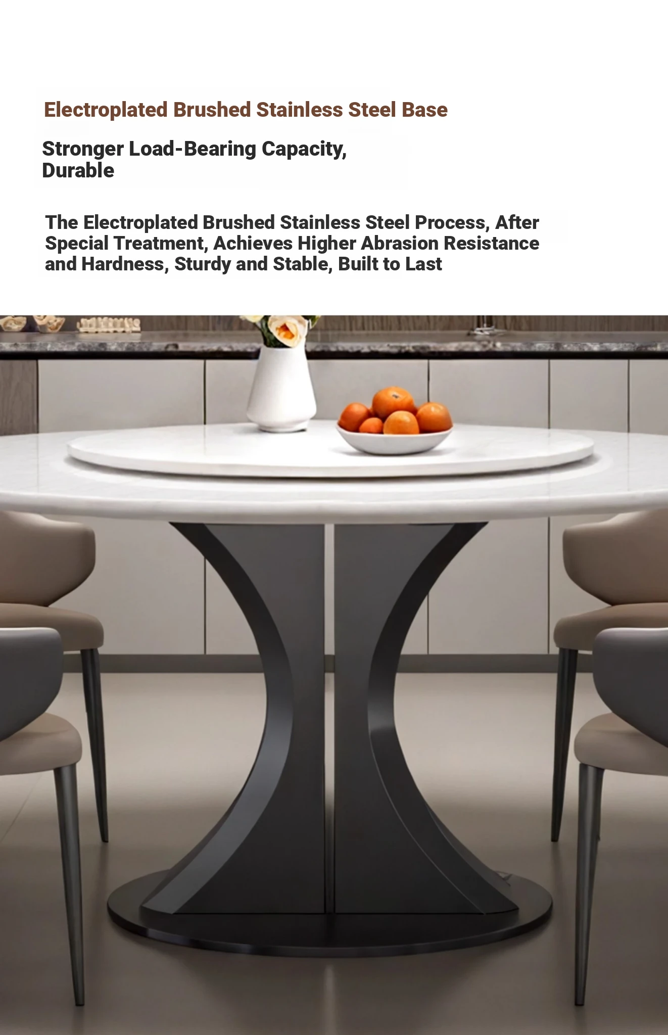 Cary Bingyu Natural Luxury Stone Round Dining Table (with Turntable) + Designer Dining Chair * 4