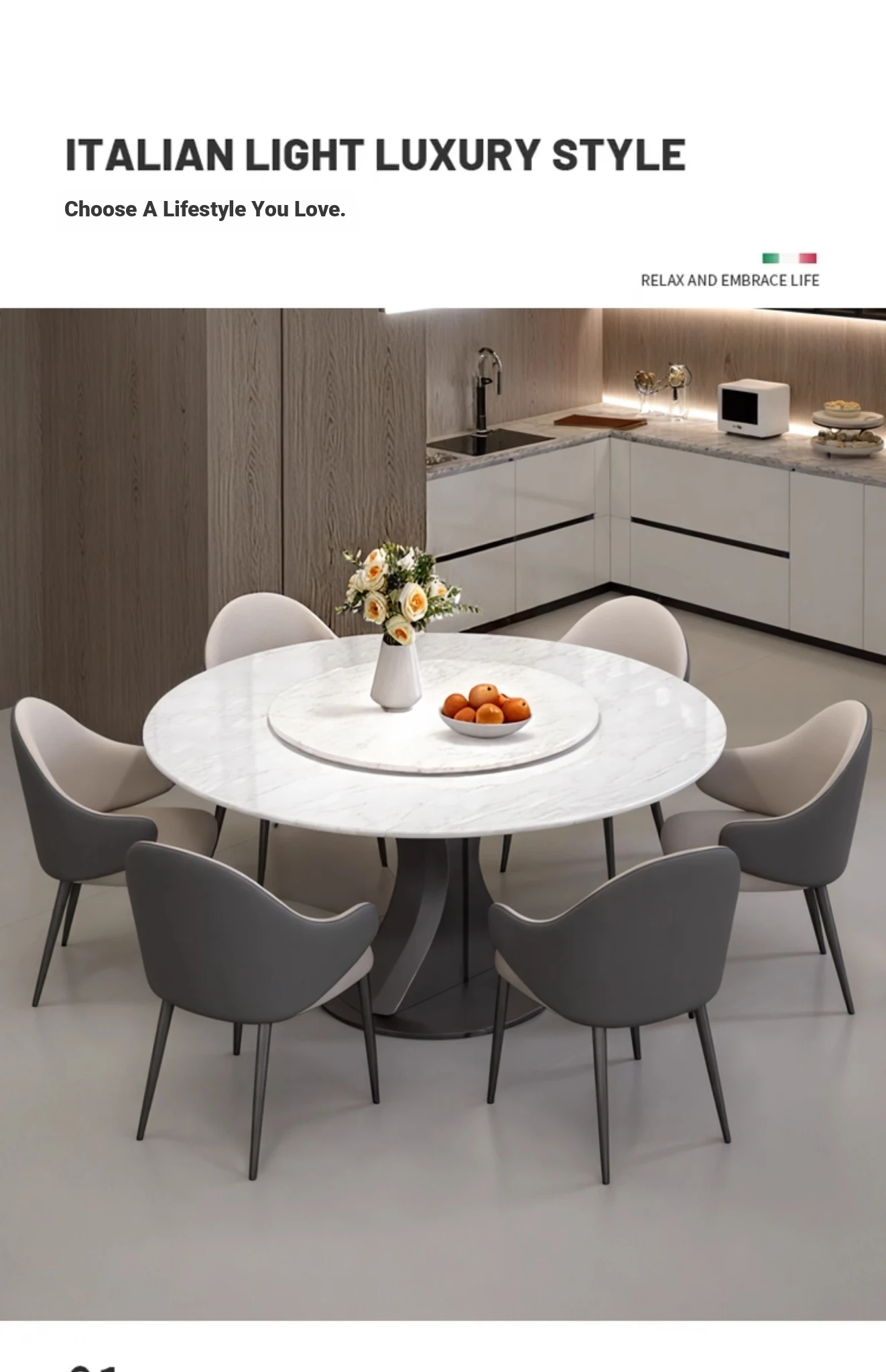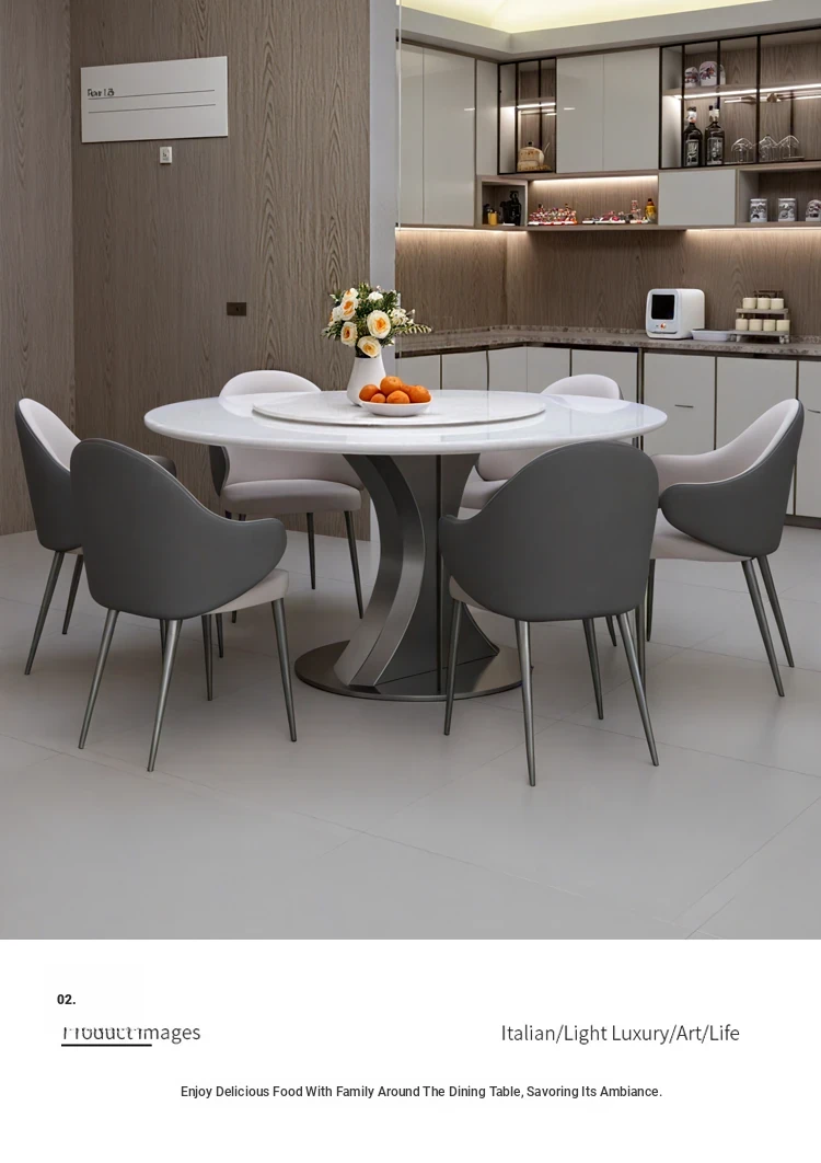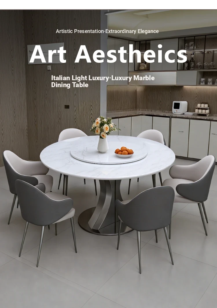 Cary Bingyu Natural Luxury Stone Round Dining Table (Without Turntable) + Designer Dining Chair * 6